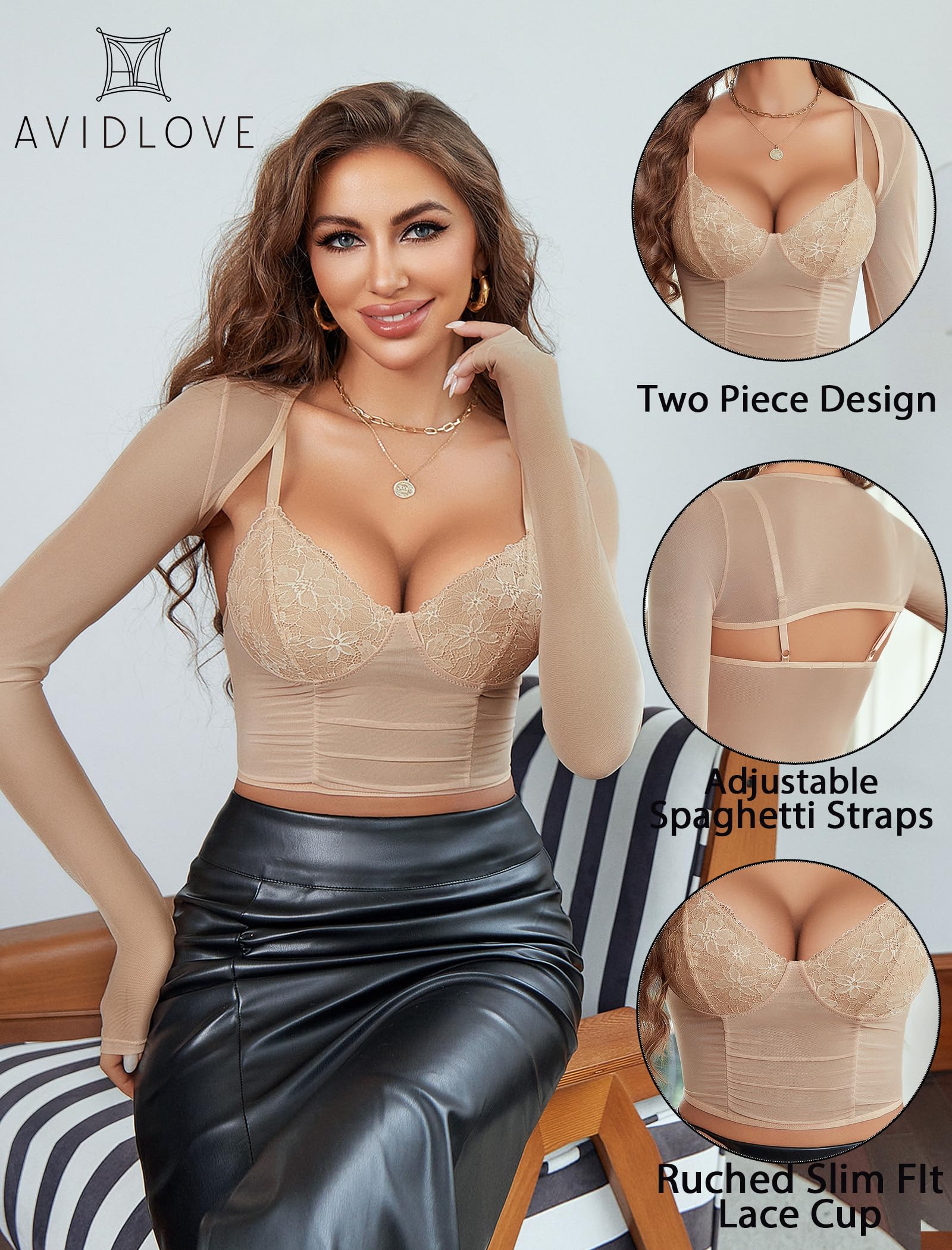 Stylish Design:Mesh sheer, long sleeve,low cut v neck crop cami top, spaghetti strap solid lace mesh crop top, slim fit,while shaping your body curves perfectly showing your confidence & beauty.It looks simple & sexy.