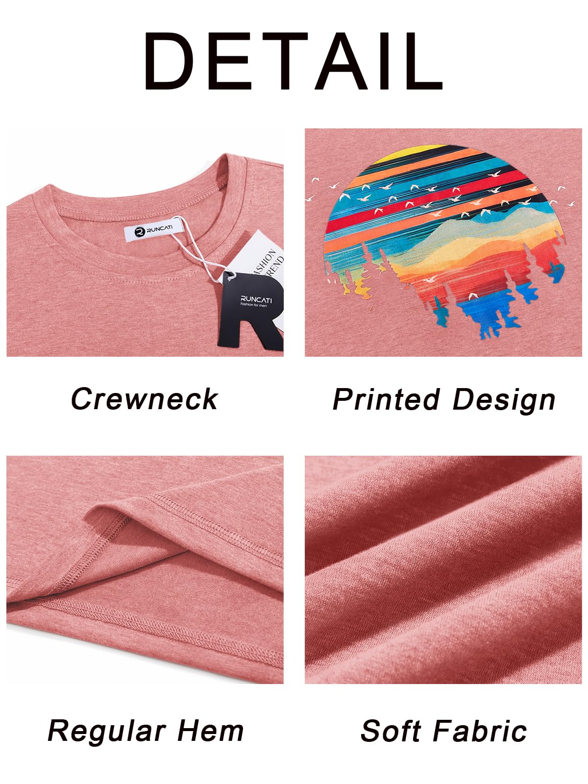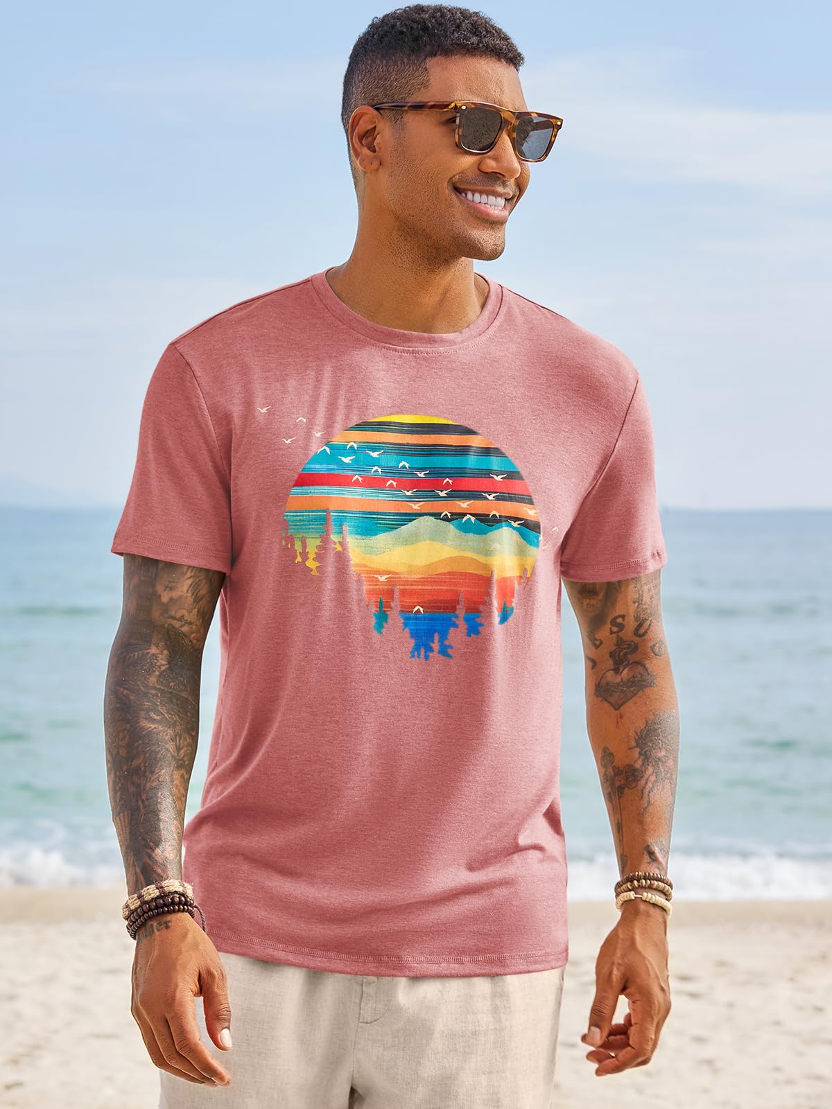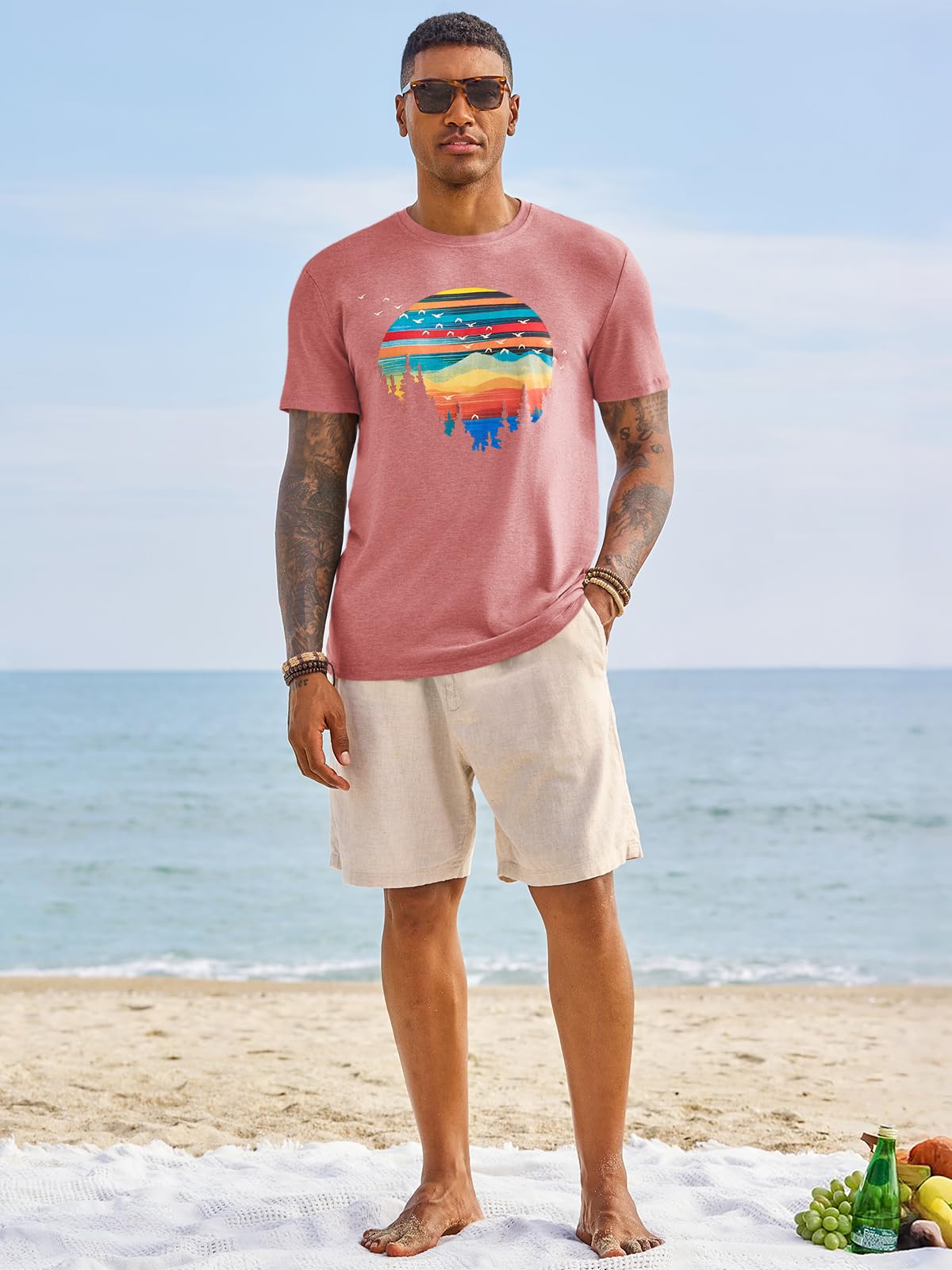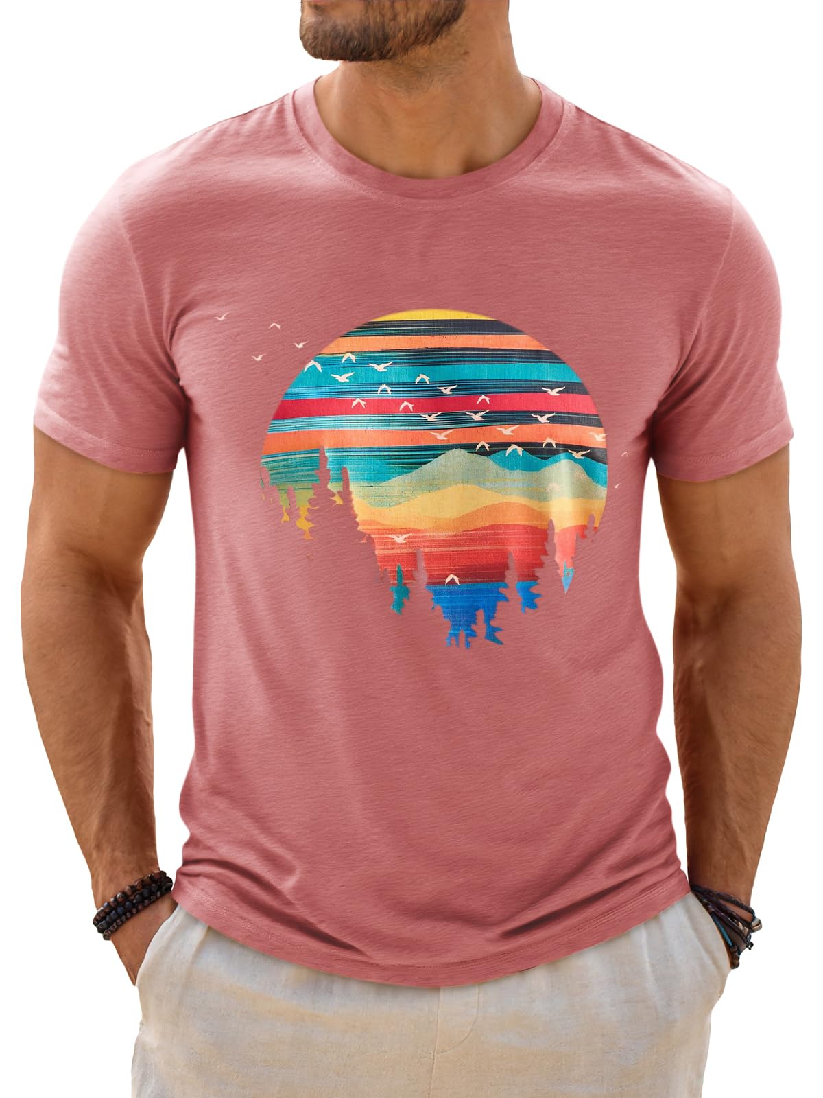 【Features】: Mens summer tshirts are feature with short sleeve, round neck, solid color with geometric nature sunset printed, that add a timeless and versatile style to these t-shirts, and loose fit style give you more relaxed and freedom