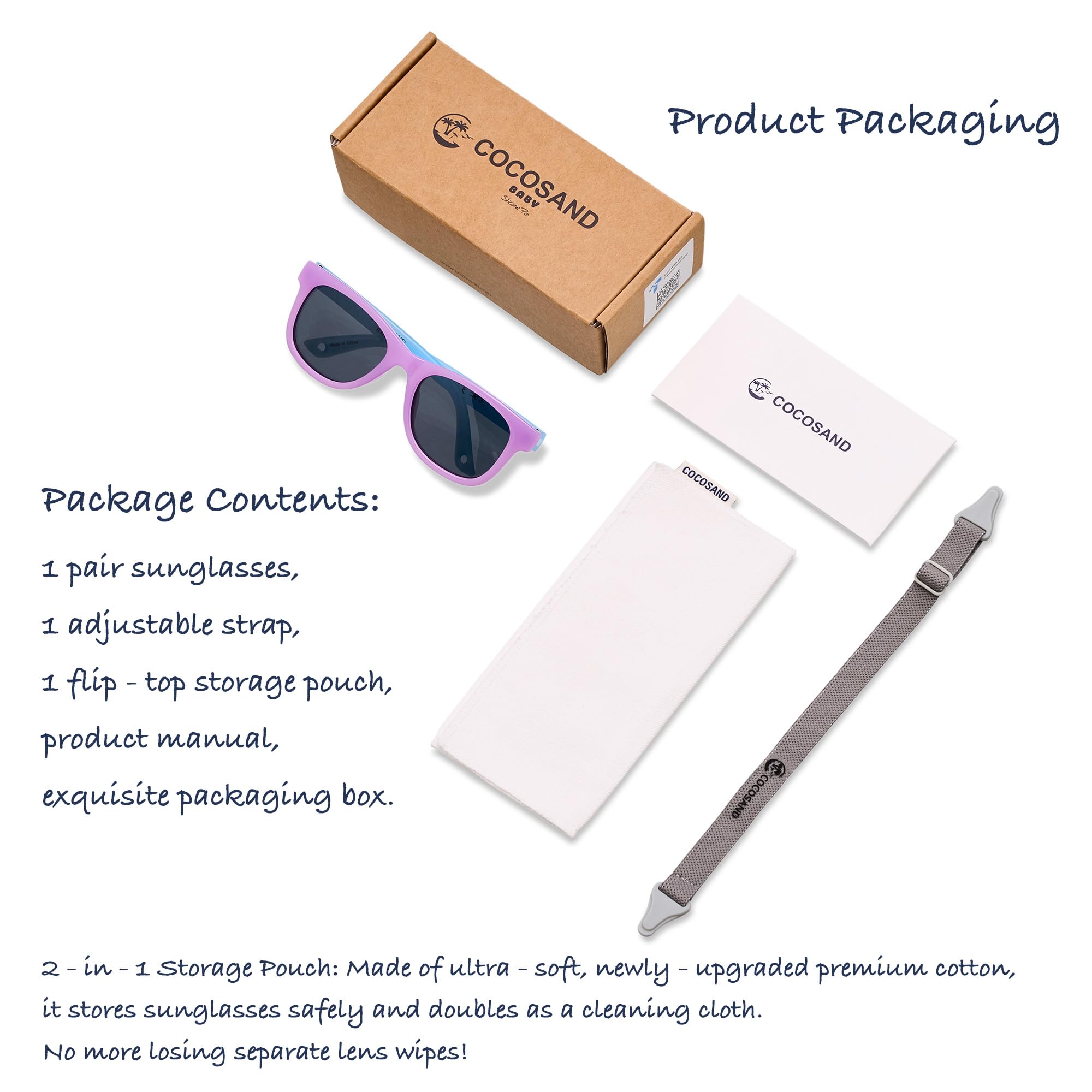 【Stylish and Practical Package】:COCOSAND baby sunglasses come with a flip - top glasses pouch and a product manual. The packaging is made of kraft paper, simple yet elegant