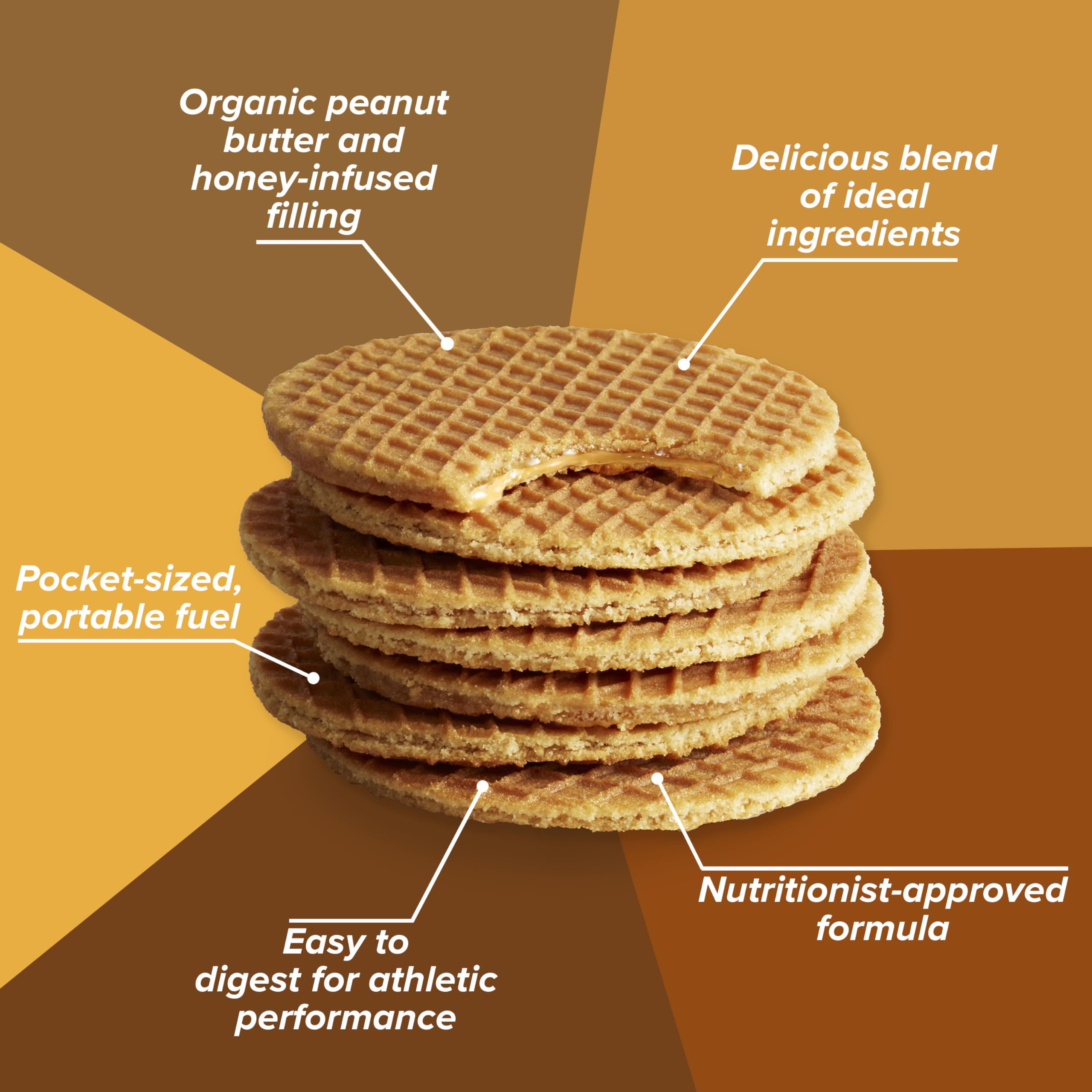DELICIOUS Honey-infused filling combined with creamy peanut butter, all sandwiched between two soft-baked waffles. It's a truly delicious way to fuel up for your next challenge.
