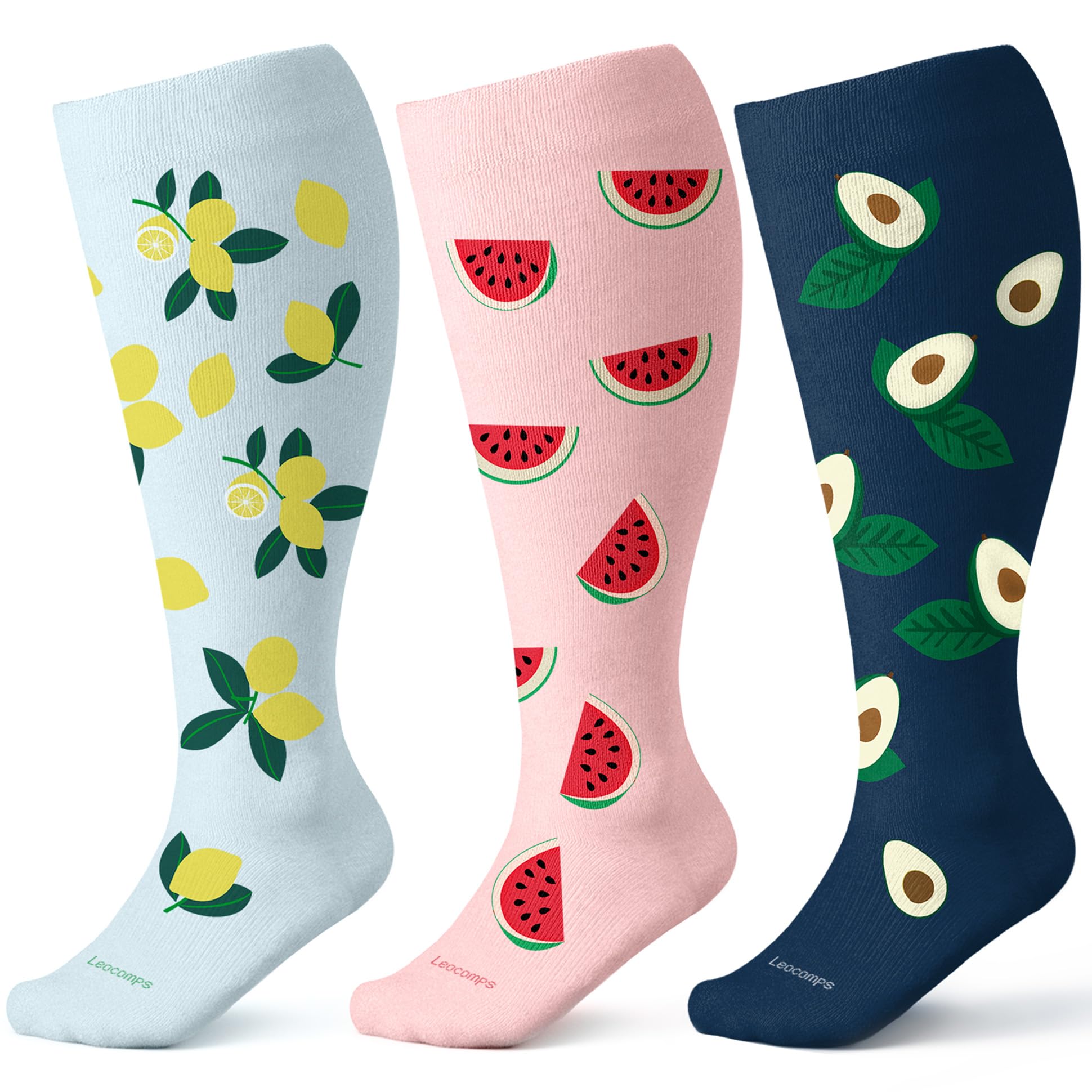 3-Pair Set for Everyday Support: Lalapapa compression socks come in a convenient 3-pair set, designed to meet your needs for multiple occasions. Whether you're at work, traveling, exercising, or relaxing at home, you'll always have the right pair to keep your legs supported and comfortable. With playful patterns and reliable functionality, Lalapapa combines style, comfort, and performance in every step