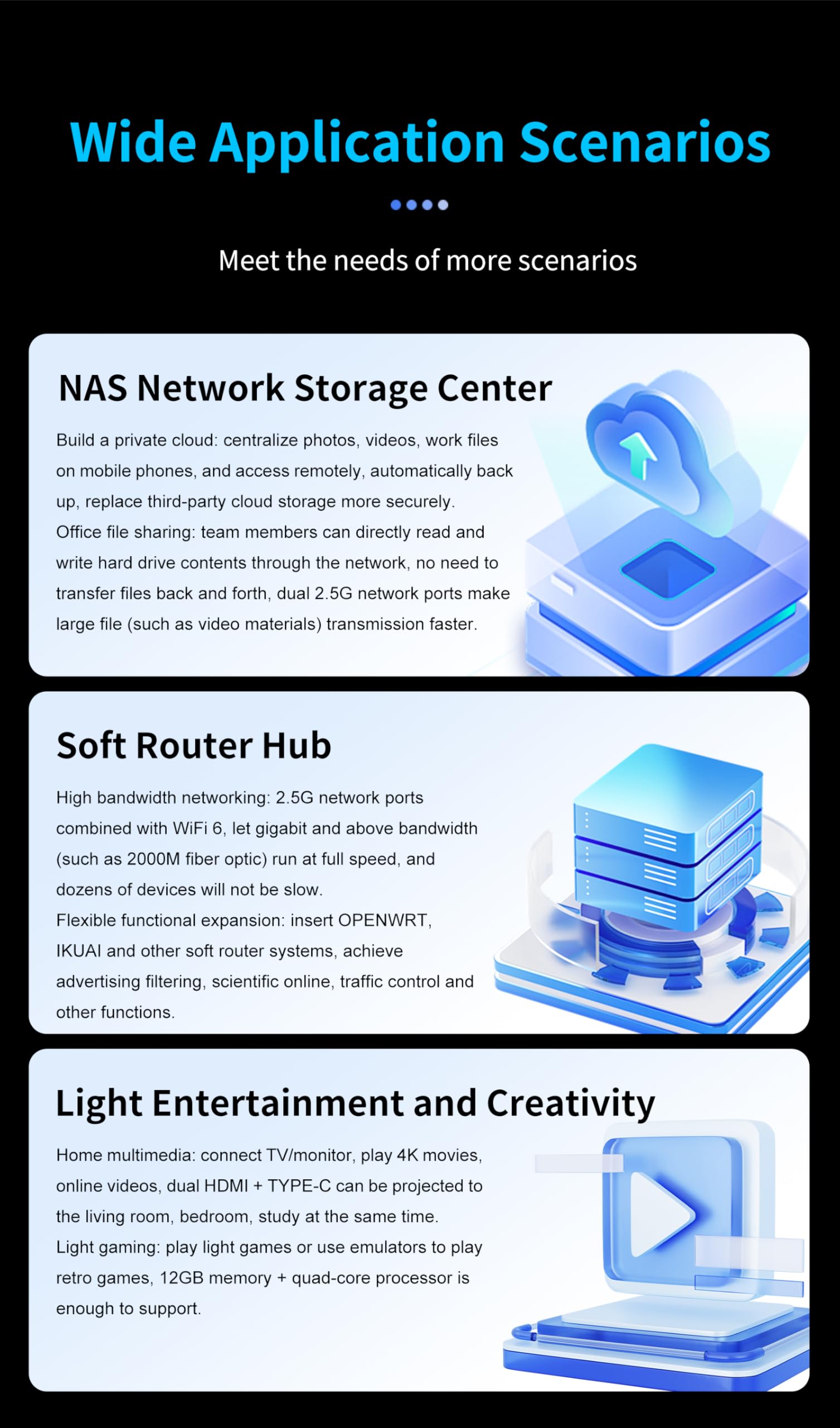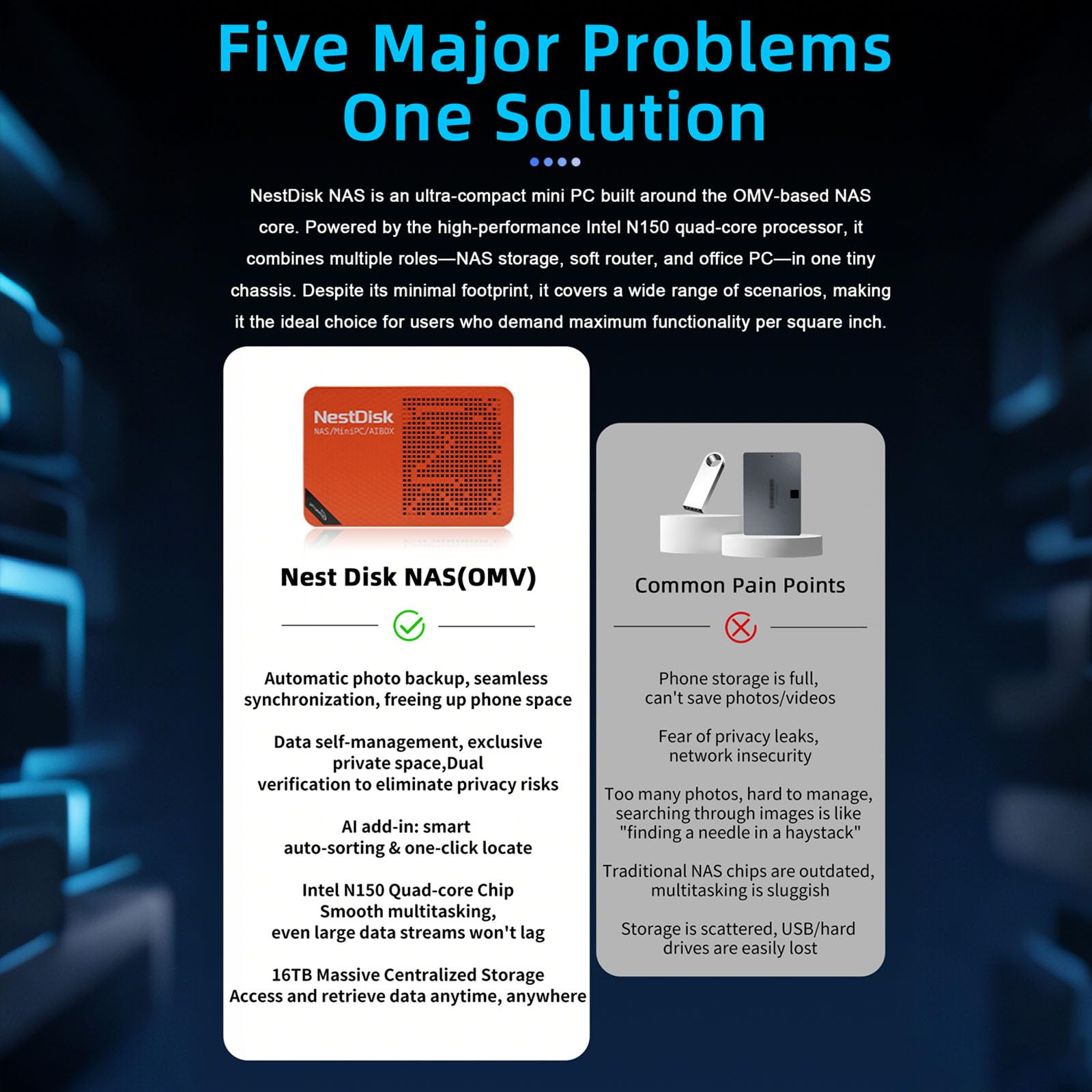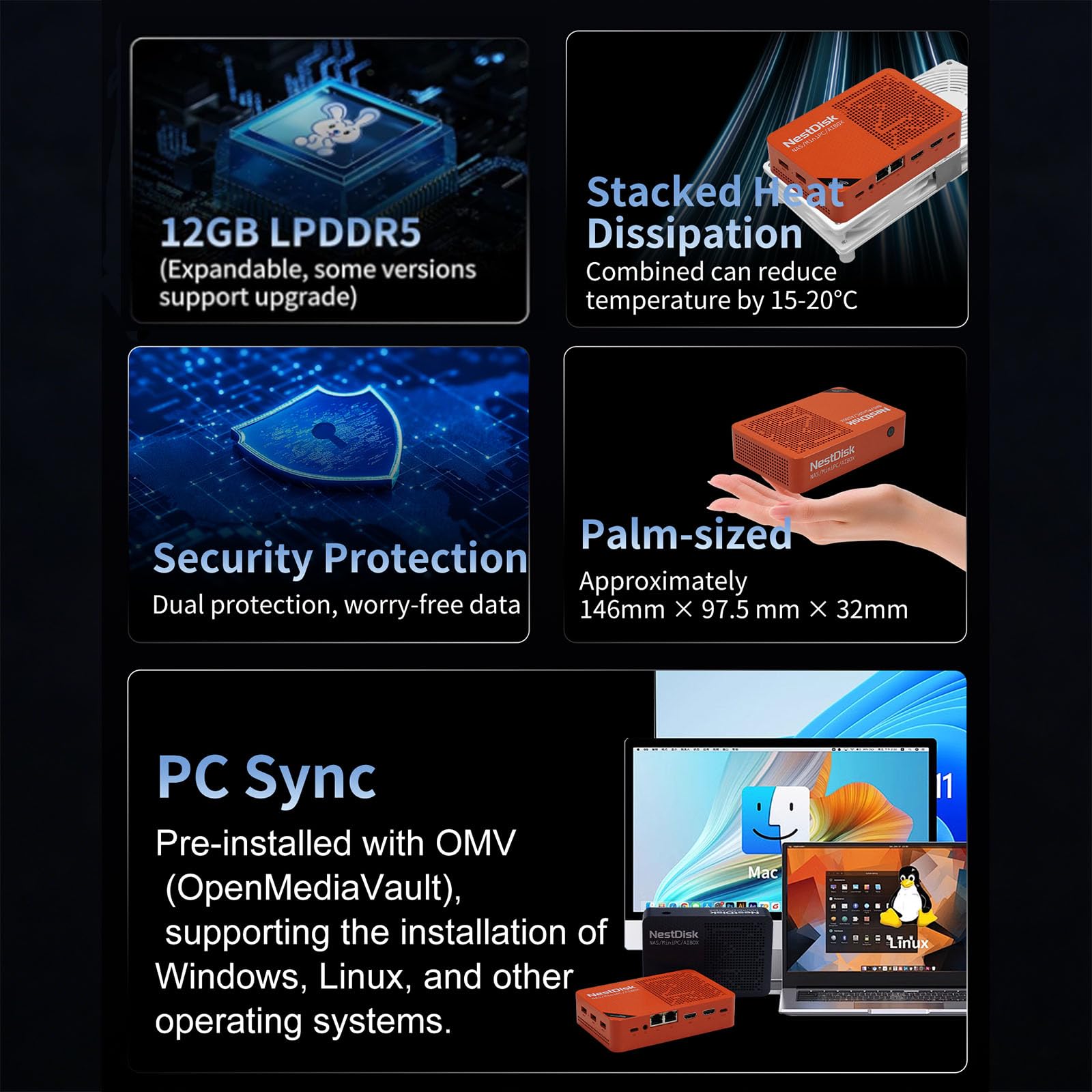 [Plug and Play Private Cloud Experience] YOUYEETOO Nest Disk NAS Mini PC is a pre-installed with the OpenMediaVault system, requiring no complex configuration. Simply power it on and connect to the network to activate full NAS functionality. It supports multi-language operating systems, including Windows 11, Ubuntu, and Linux. Its plug-and-play capability enables use as private cloud storage, easily transforming into an HTPC (Home Theatre PC) or software-defined router to meet diverse needs for home entertainment, light office work, and network management.