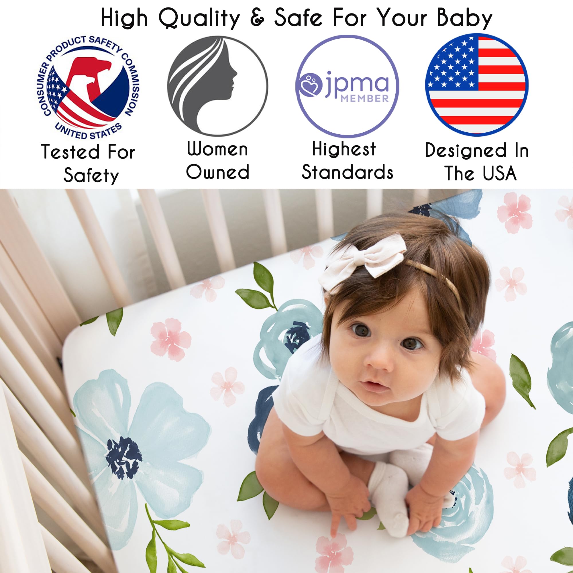 DESIGNED IN THE USA: By real parents who understand the need for comfort, practicality, and style. Sweet Jojo Designs is a small, women owned business. The mom's on our team know a crib mattress sheet is first priority for your baby essentials to ensure a restful night of sleep. We use top fabrics and designs to create soft crib sheets that are stretchy and comfortable for your infant or toddler. We've studied the latest trends in floral crib sheets for baby girl to bring you the finest product.