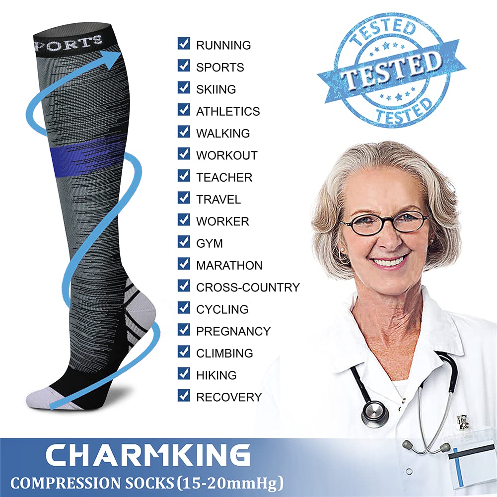 COMPRESSION SOCKS - We intend combining fashion, technology and science to bring you the triple comfort without. The material of our compression socks are upgraded with nylon percentage from 40% to 85%. Delivers 360-degree stretch for greater flexibility and durability. Breathable high performance fabric keeps an optimal temperature.
