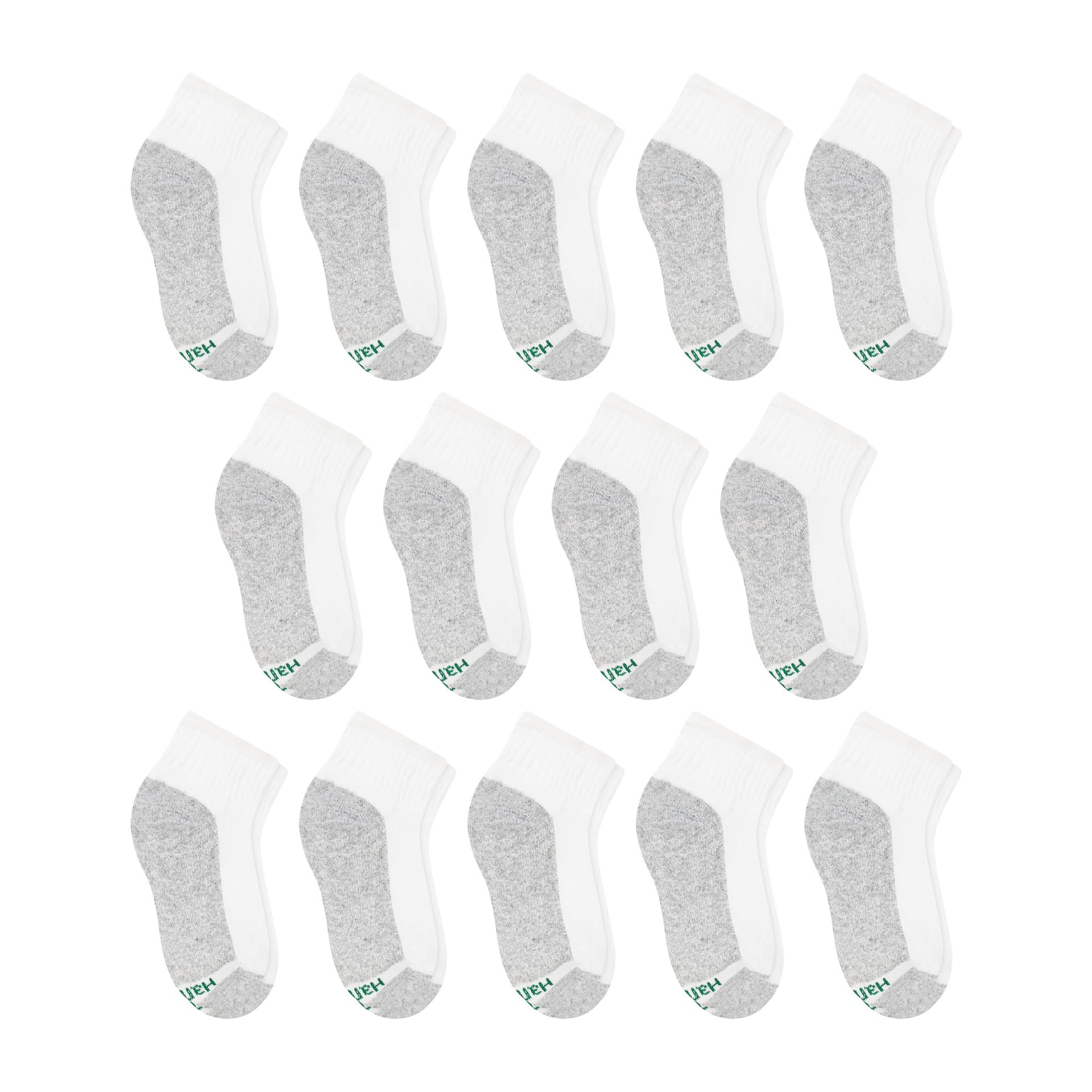 Description Start every day off right with these Hanes® boys’ ankle socks, designed to keep his feet comfortable, supported, and ready for an adventure. This convenient 14-pack means there’s always a clean pair ready to go - perfect for school, sports, and weekends. Reinforced heels and toes add extra durability, while a cushioned sole and smooth toe seam help keep every step soft and comfortable. The polyester and cotton blend with a touch of spandex offers just the right amount of stretch, so each pair stays put and keeps its shape. Cool Comfort® fabric helps wick away moisture to keep his feet cool and dry all day long. Finished with a ribbed cuff for a stay-in-place fit, these ankle socks for boys bring a classic look to his everyday rotation. And when laundry day rolls around, the EZ Sort® system helps make matching kids’ socks simple and stress-free.