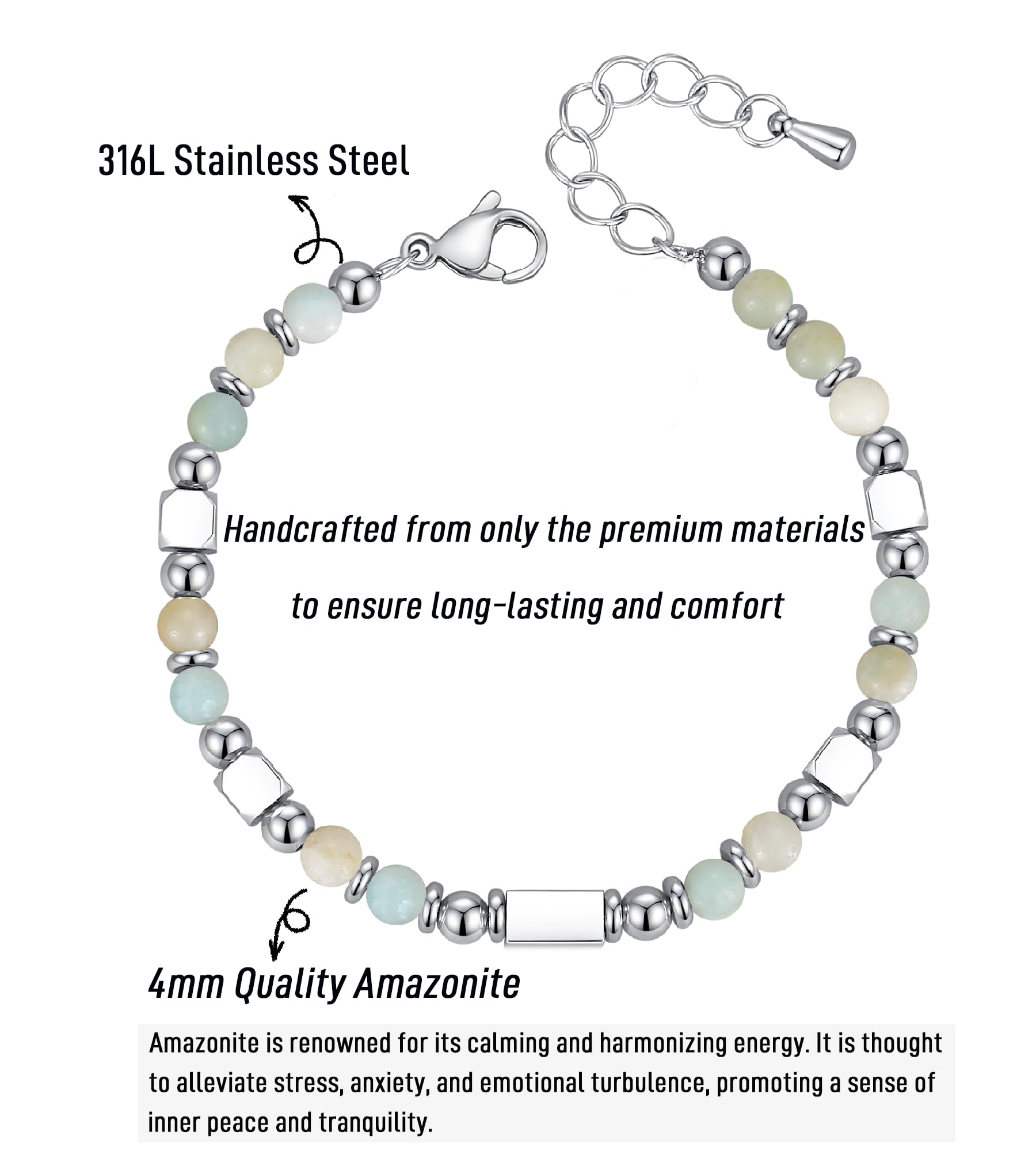 Material and Quality: This birthday bracelet is handcrafted with 4mm quality Amazonite and 316L stainless steel beads. It is strong and hypoallergenic. Every natural stone has been carefully selected one by one and strung together to create a piece of dainty birthday jewelry. We know how important this special piece may be, and that is why we make it with premium materials that can be worn for years to come.