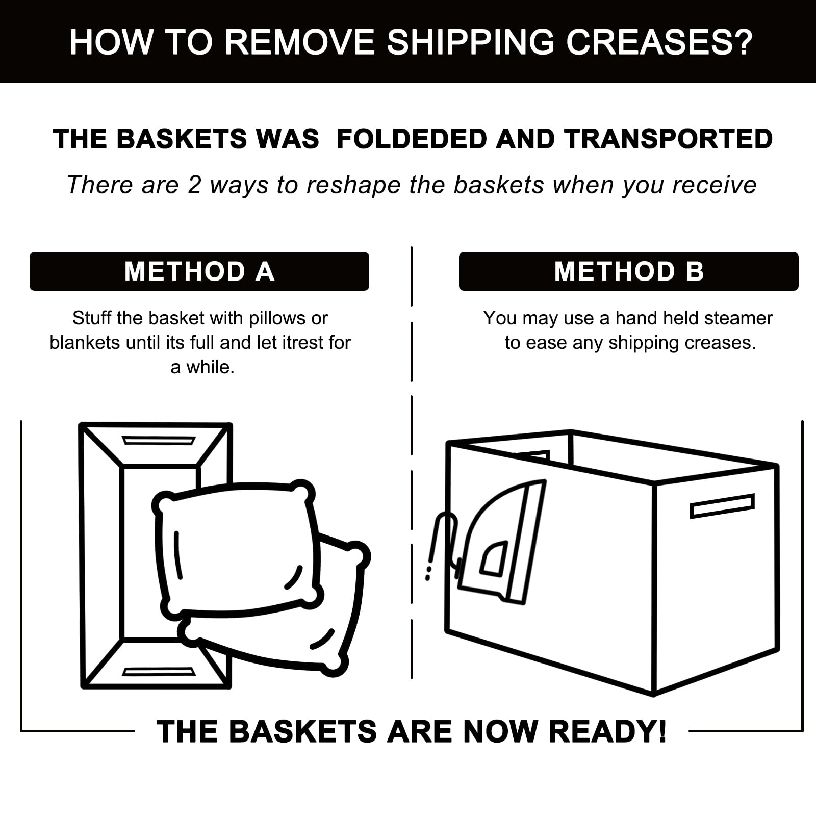 NOTE: The toy basket is folded, but it will turn back to its elegant shape quickly if you fill it with some pillows or blankets, and iron is great idea to remove the creases