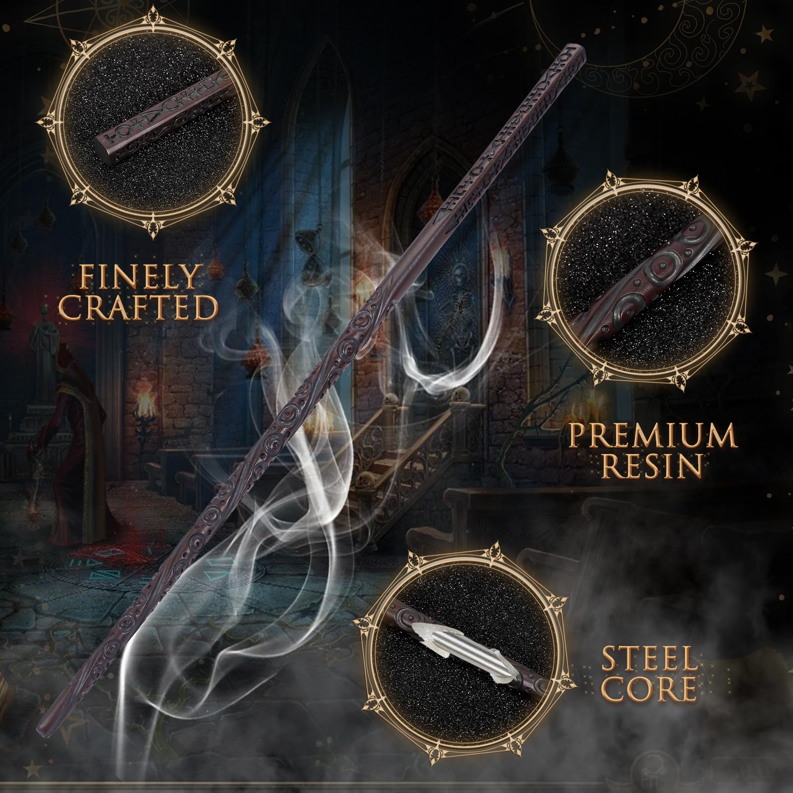 PREMIUM QUALITY: Crafted with a robust steel core and high-quality resin, this wizard wand is built to last. Its exceptional craftsmanship and durability guarantee it will endure the test of time