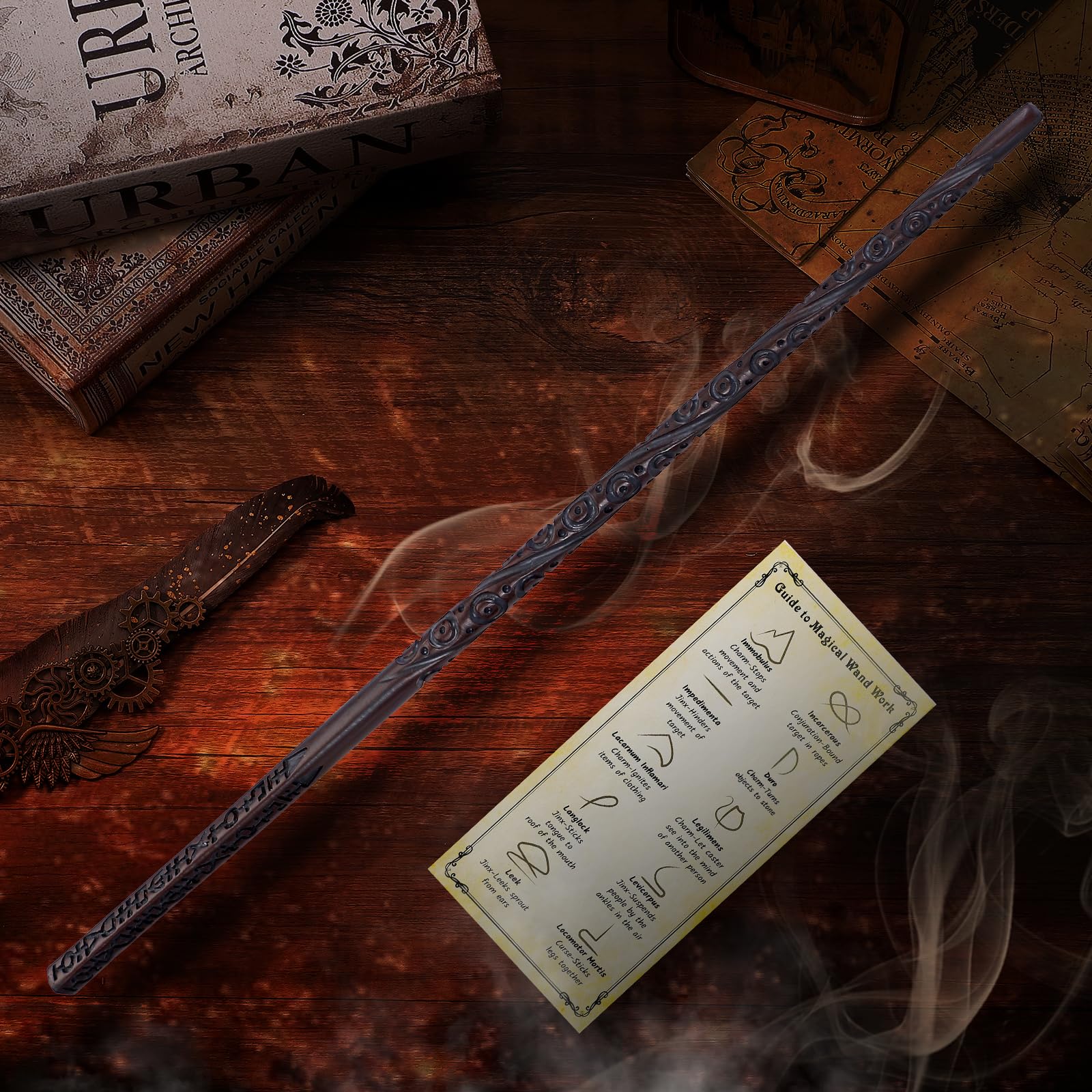 COMPLETE PACKAGE: Measuring an impressive 14.5 inches in length, this sorcerer's wand includes a storage bag and a spell guidebook, making it an ideal addition to any collector's collection. It represents a complete magic set that seamlessly blends elegance with practicality
