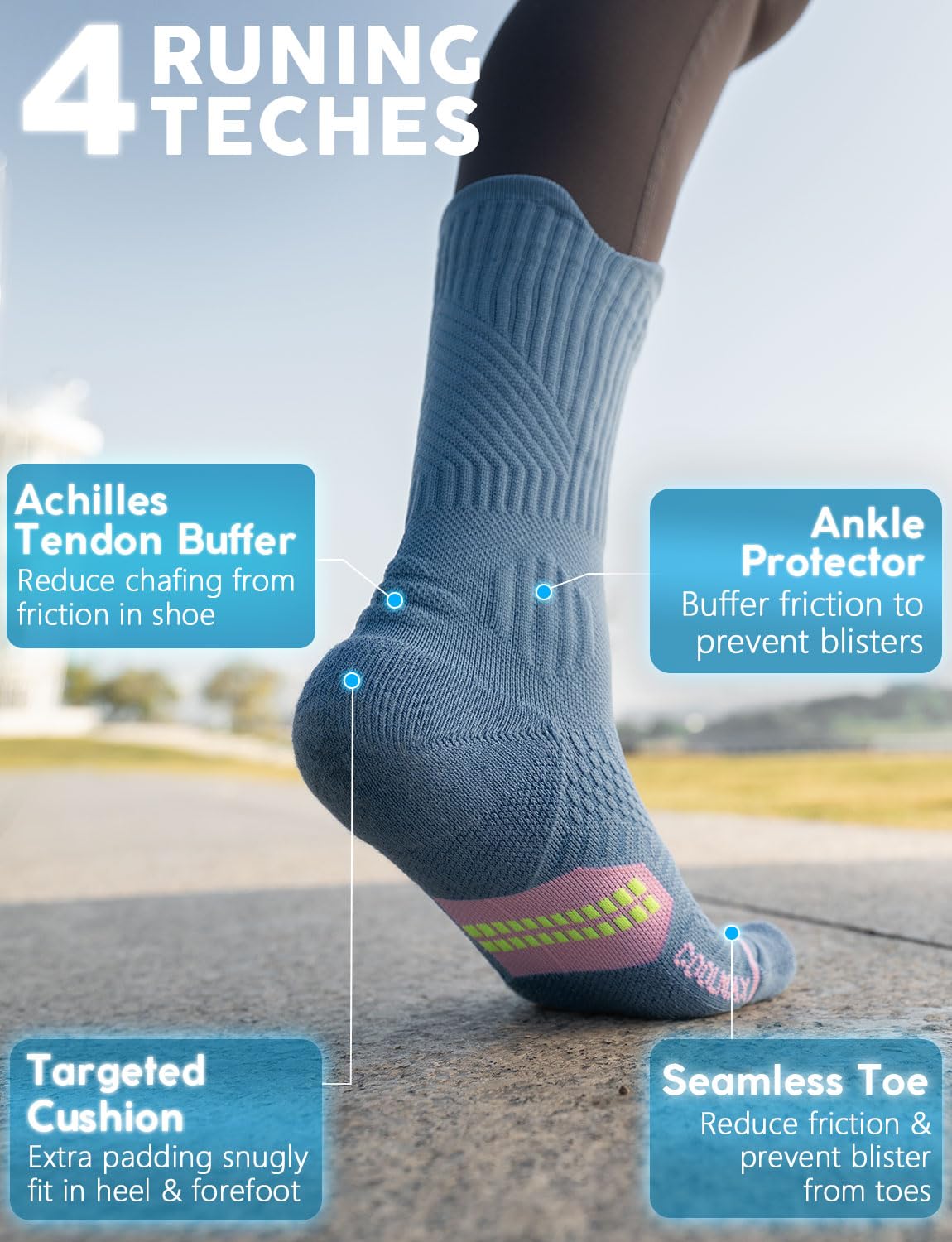 【Blister Defense, All-Day Comfort】 Anti-blister design with seamless toes and reinforced padding protects during rocky hikes or city walks. Pair with yoga pants and cushioned sneakers for runs as smooth as your athleisure aesthetic.
