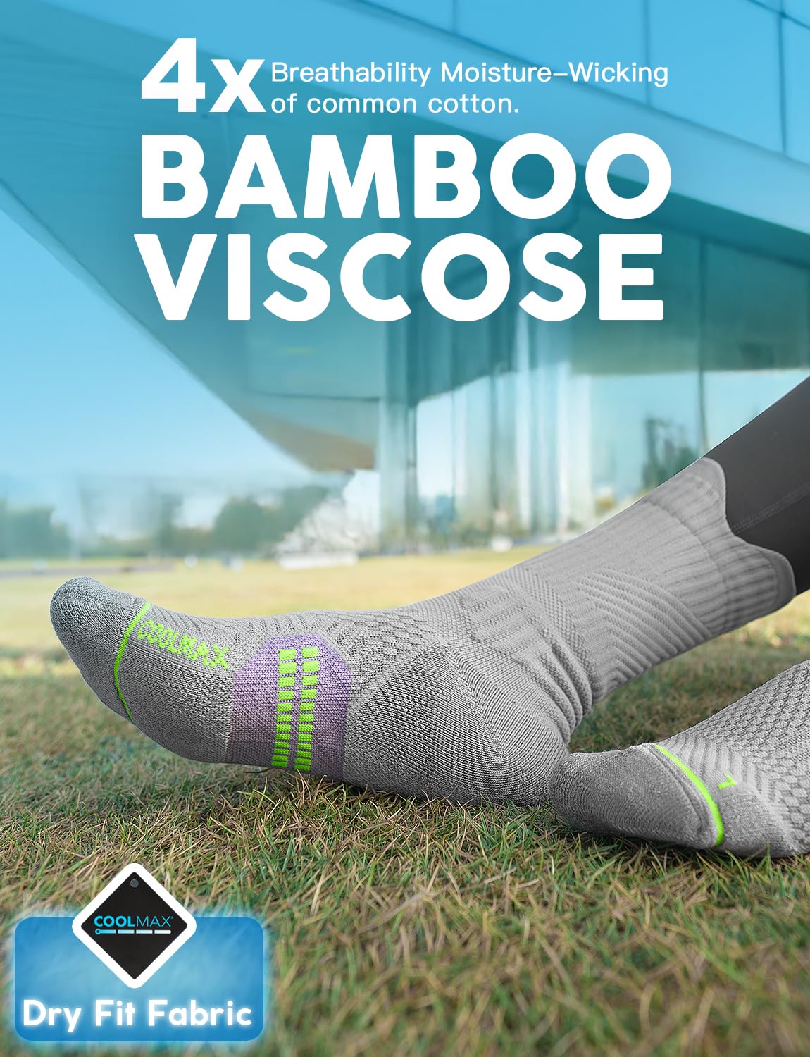 【Stay Cool, Stay Confident】 Bamboo Viscose + Coolmax blend excels at moisture-wicking, keeping feet dry through HIIT workouts or humid trail adventures. Bamboo viscose naturally resists odors and wicks moisture for daylong freshness—ideal for high-intensity cycling classes or post-jogging errands.