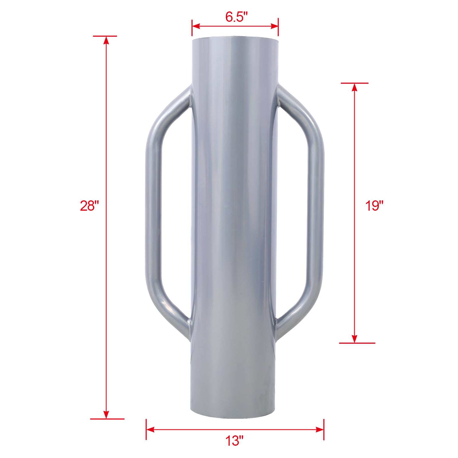 Specifications: Main Color: Grey Main Material: Steel Product Dimensions: Assembled Length (in.):28.00 Assembled Width (in.):12.60 Assembled Height (in.):6.50 Weight (lbs.):37.00 Outer Diameter: 16.5cm Inner Diameter: 15.5cm Package includes: 1 x Iron Fence Post Driver Notice: The color of the actual product may differ from the image due to the lighting or the monitor’s display. Manual measurement has been used, there may be some reasonable error.