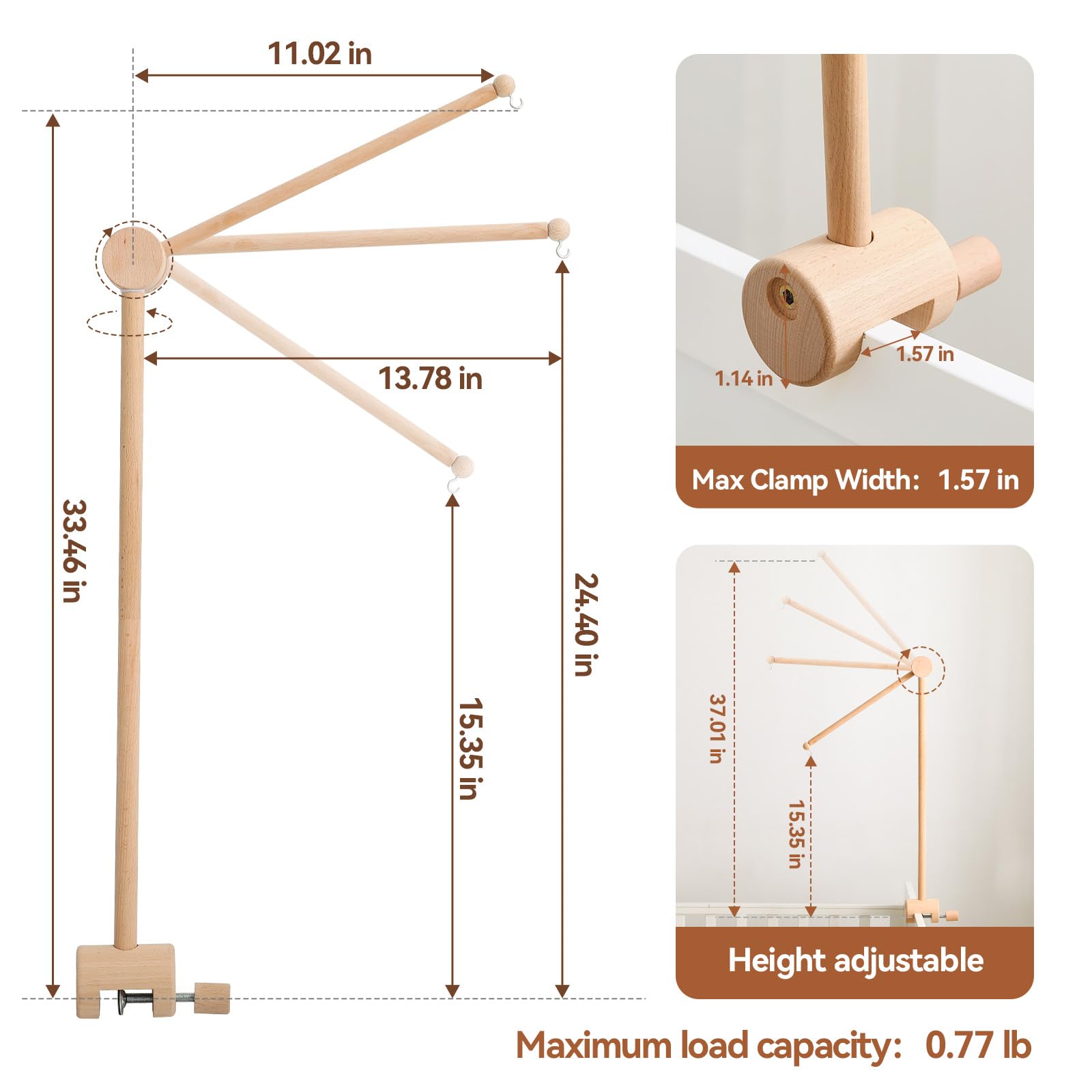 360° Vertical Adjustment - Easily adjust between two height settings to accommodate different crib sizes and baby mobile lengths, ensuring the perfect position for your baby’s comfort and engagement.