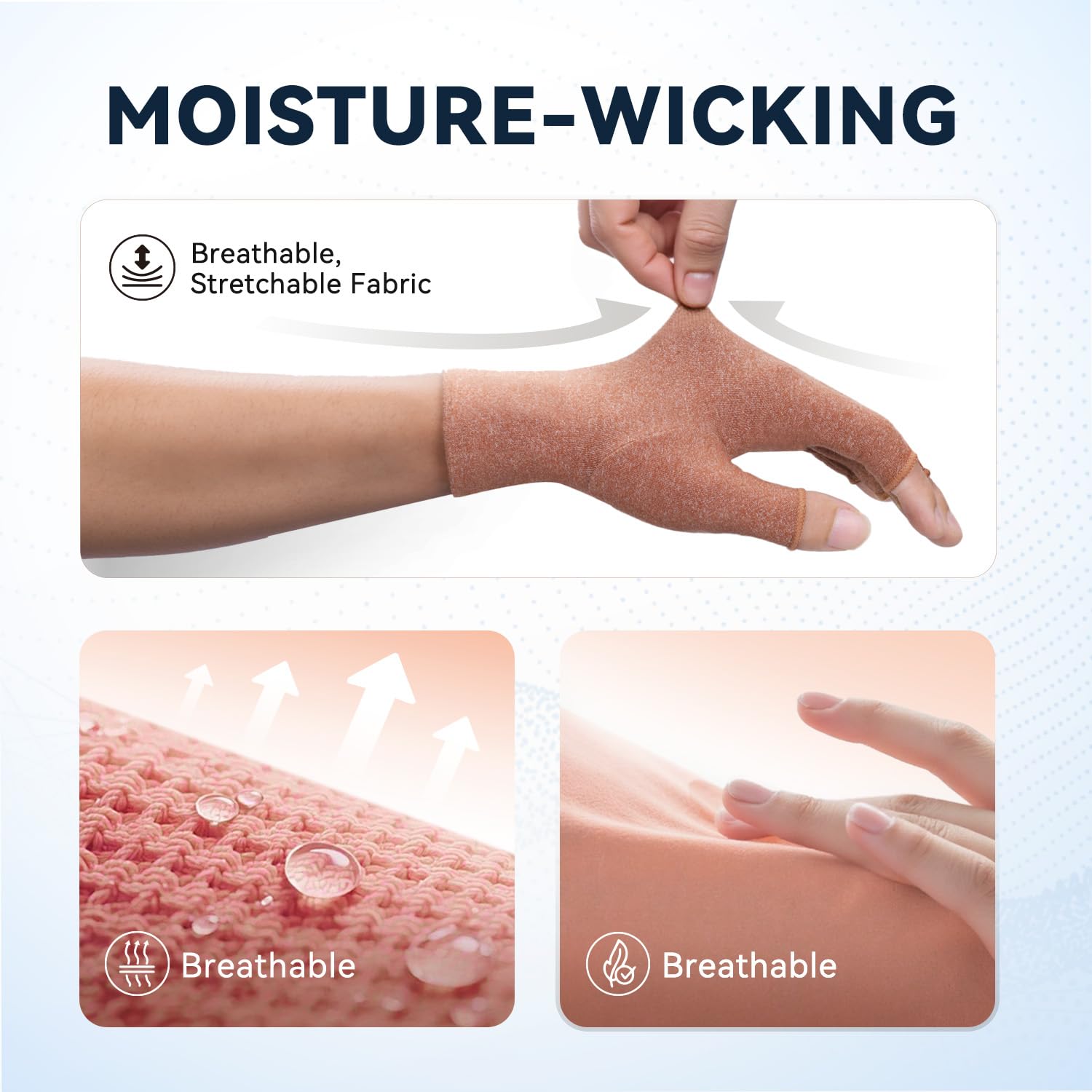 ใAll Day Wearใ lightweight, breathable cotton-spandex material will allow you to wear the gloves comfortably all day long. temperature regulating - retains heat to soothe hands and knuckles without becoming stuffy.