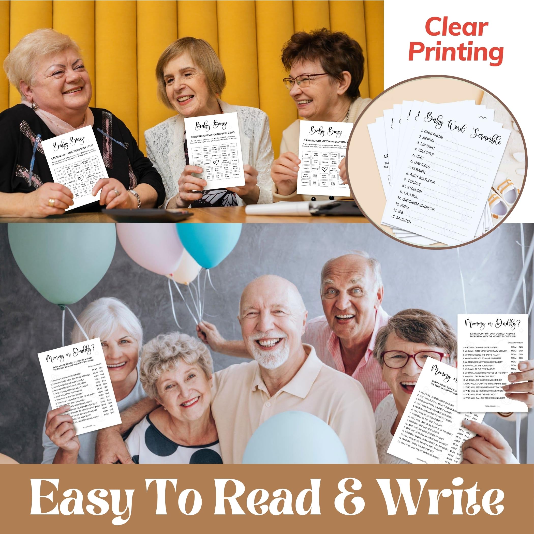 Baby Shower Essentials For Party: Each game card in our baby girl shower games is printed on high-quality white paper, ensuring durability throughout the event and clear, legible text that all guests can read, perfect for baby shower center pieces