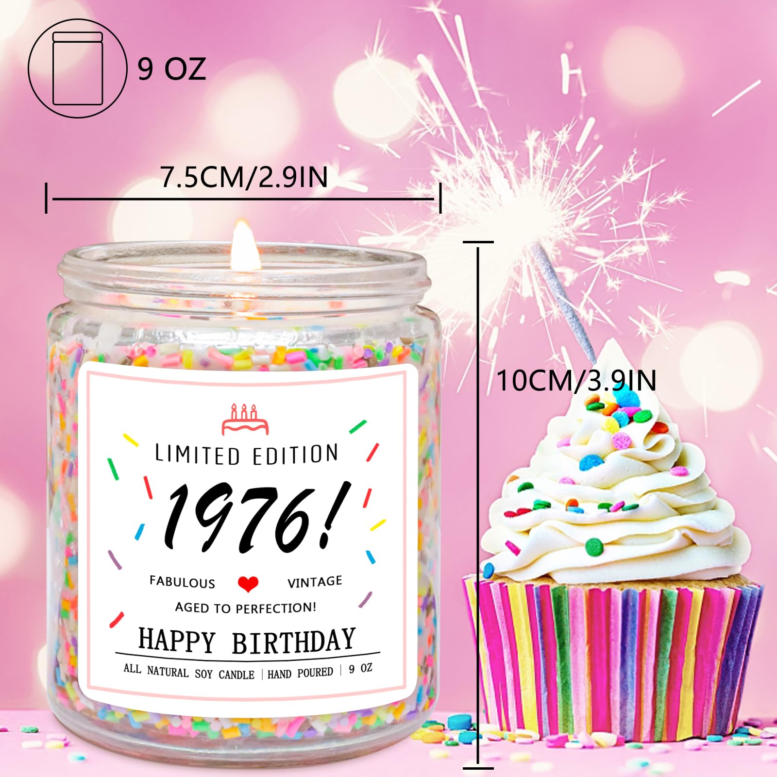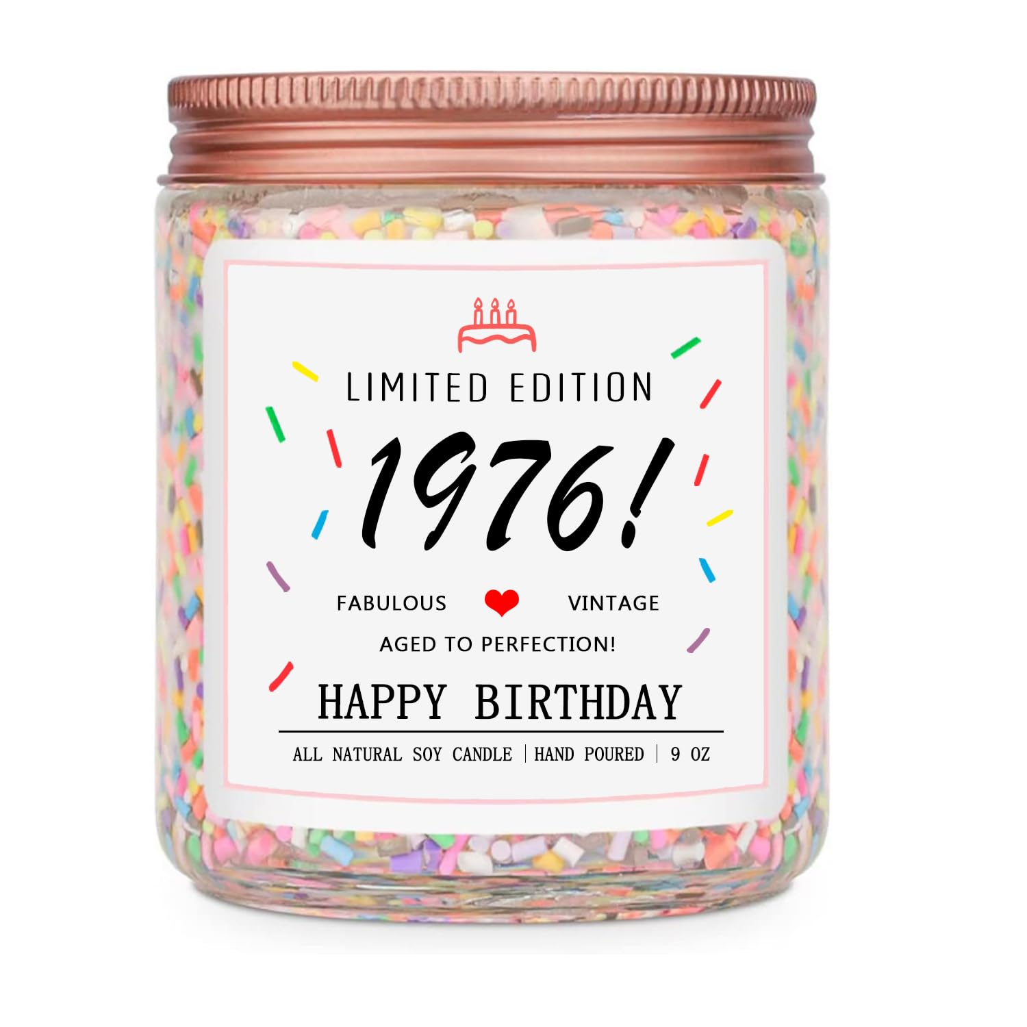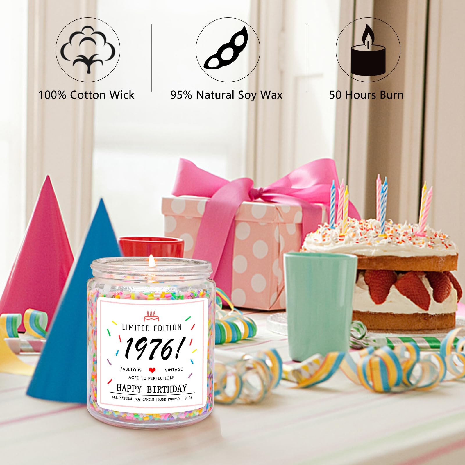 Vanilla Scented Handmade Candles: The materials used to make 1976 birthday candles include cotton core. Infused with vanilla birthday cake scent with sprinkles, it's a unique and well choice.