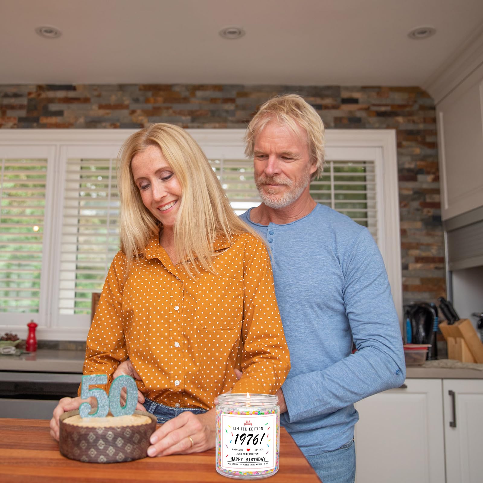 Perfect 50th Birthday Gift for Her: LIMITED EDITION 1976 candle is 3 "W x 4" H, with the words "FABULOUS - THRIVING - AGED TO PERFECTION". Give her a unique and thoughtful gift that perfectly symbolizes turning sixty to surprise her.