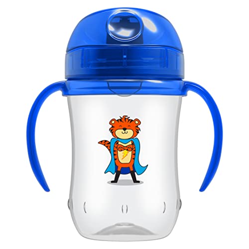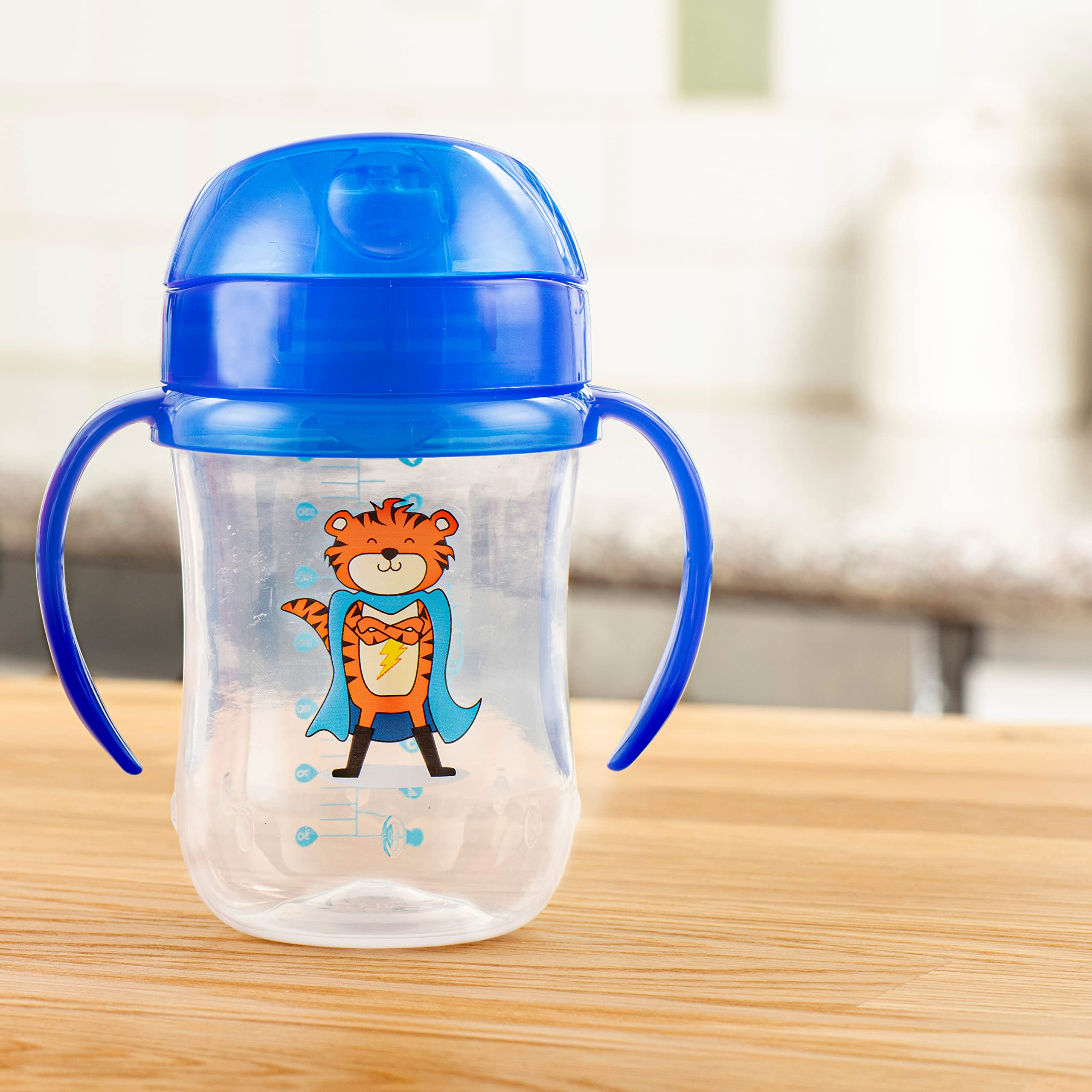 A soft approach leads to big leaps in bottle to cup transitions with the Dr. Brown's Milestones Soft Spout Toddler Cup! Help baby get a hold on sippy skills with the soft, one-piece silicone spout for spill-proof learning. With handles that lock in place and a contoured shape, baby will get a good grip on this toddler cup. As they grow, remove the handles so they can learn to hold the cup like a big kid! An attached lid folds all the way back to stay out of baby's way and keeps the spout clean when not in use. Bright blue and pink colors and cute bunny and tiger designs keep baby coming back for more. This easy-clean cup has a one-piece valve for quick assembly and washing. Dishwasher (top rack) and sterilizer safe and BPA free. 9 oz/270 ml. 9m+.