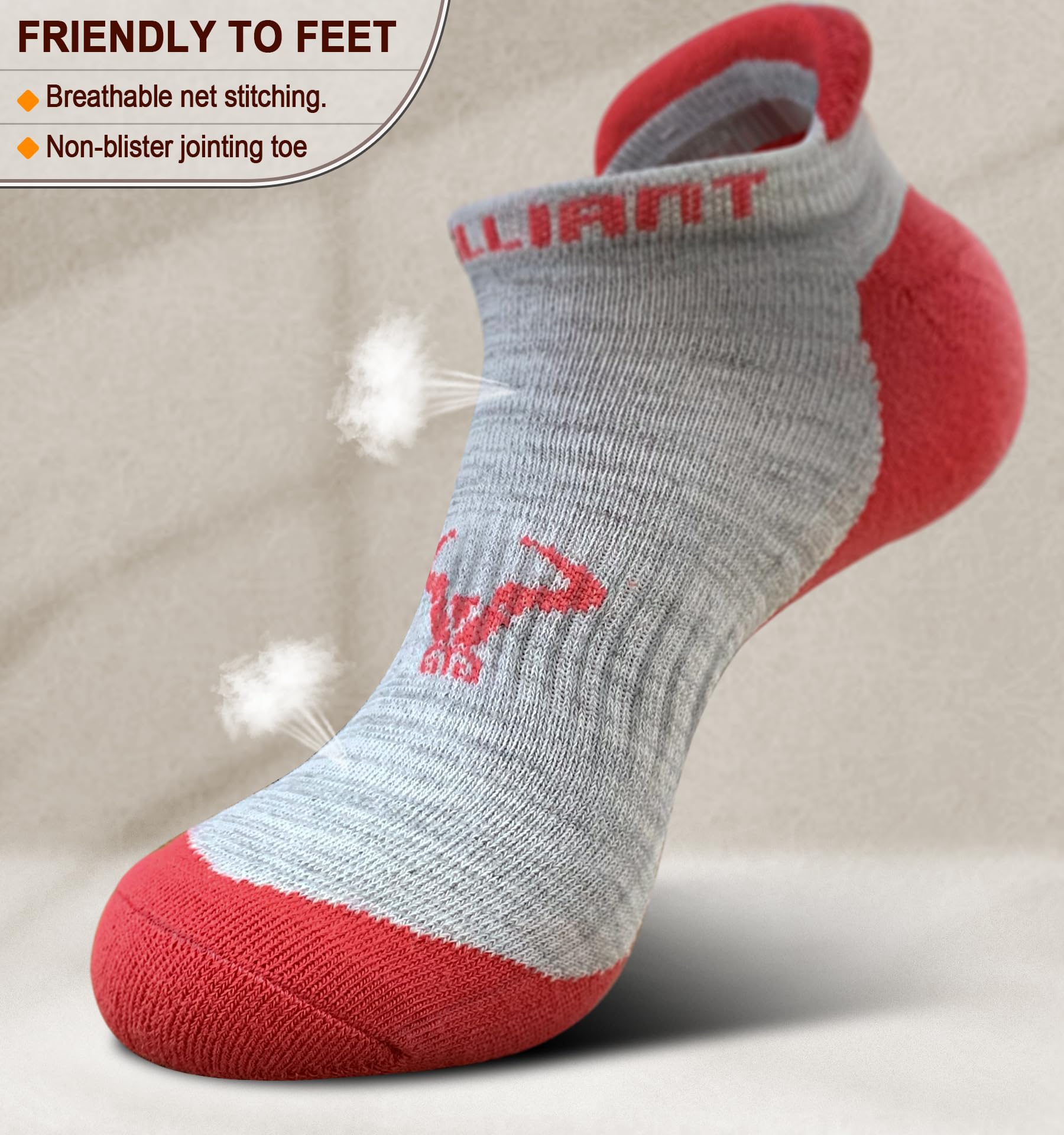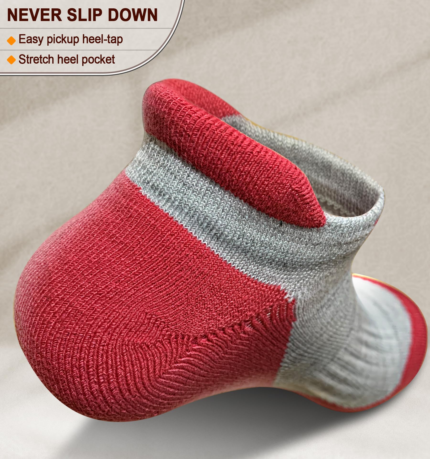 Durable--The 200 needle-count fabric knitting all around,high-density cushion in full sole and double knitting in all the joint positions,all these details proivdes a superior reliability and durability to this athletic socks to against any problem of tearing off or wearing out;