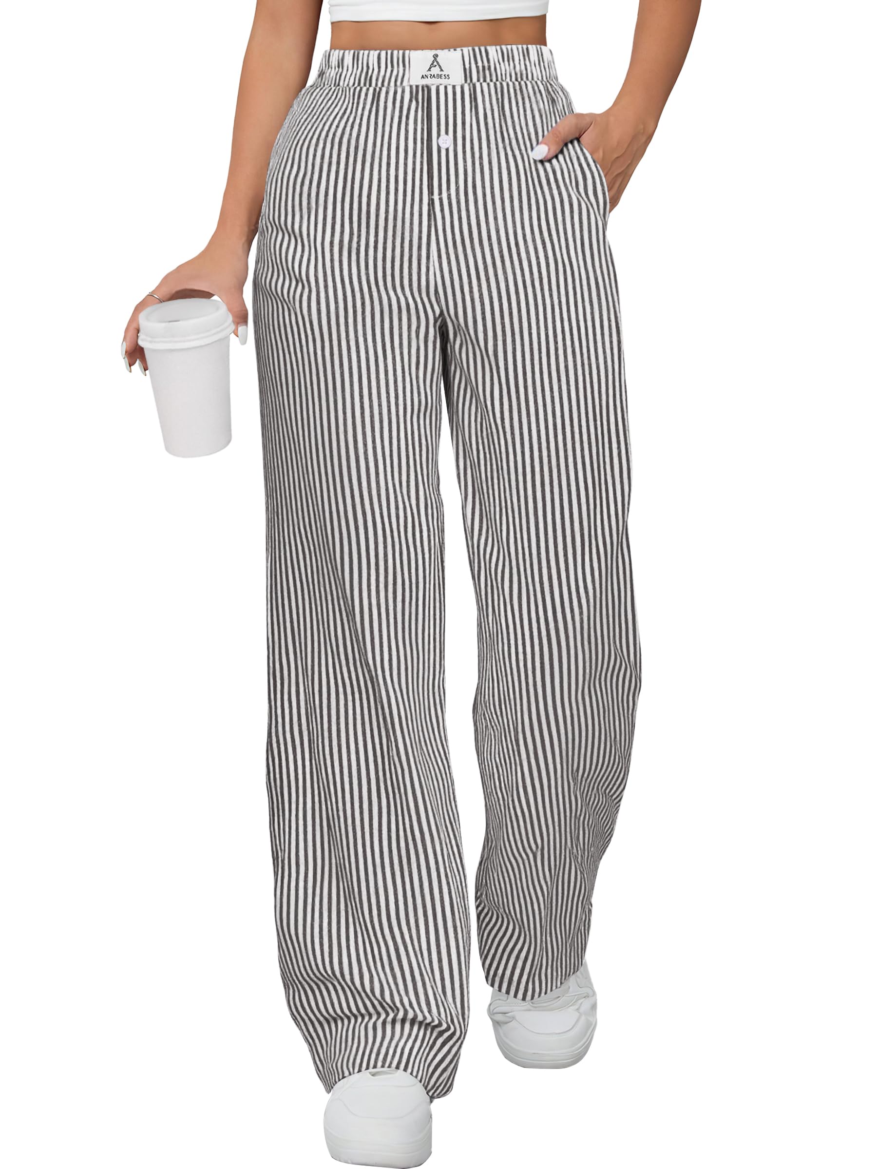 Features - Women's fall pajama pants, lounge trousers with pockets, plaidοΌstripe design, elastic waist, lightweight breathable. This womens pants perfect for daily wear, home, workout, beach, travel.