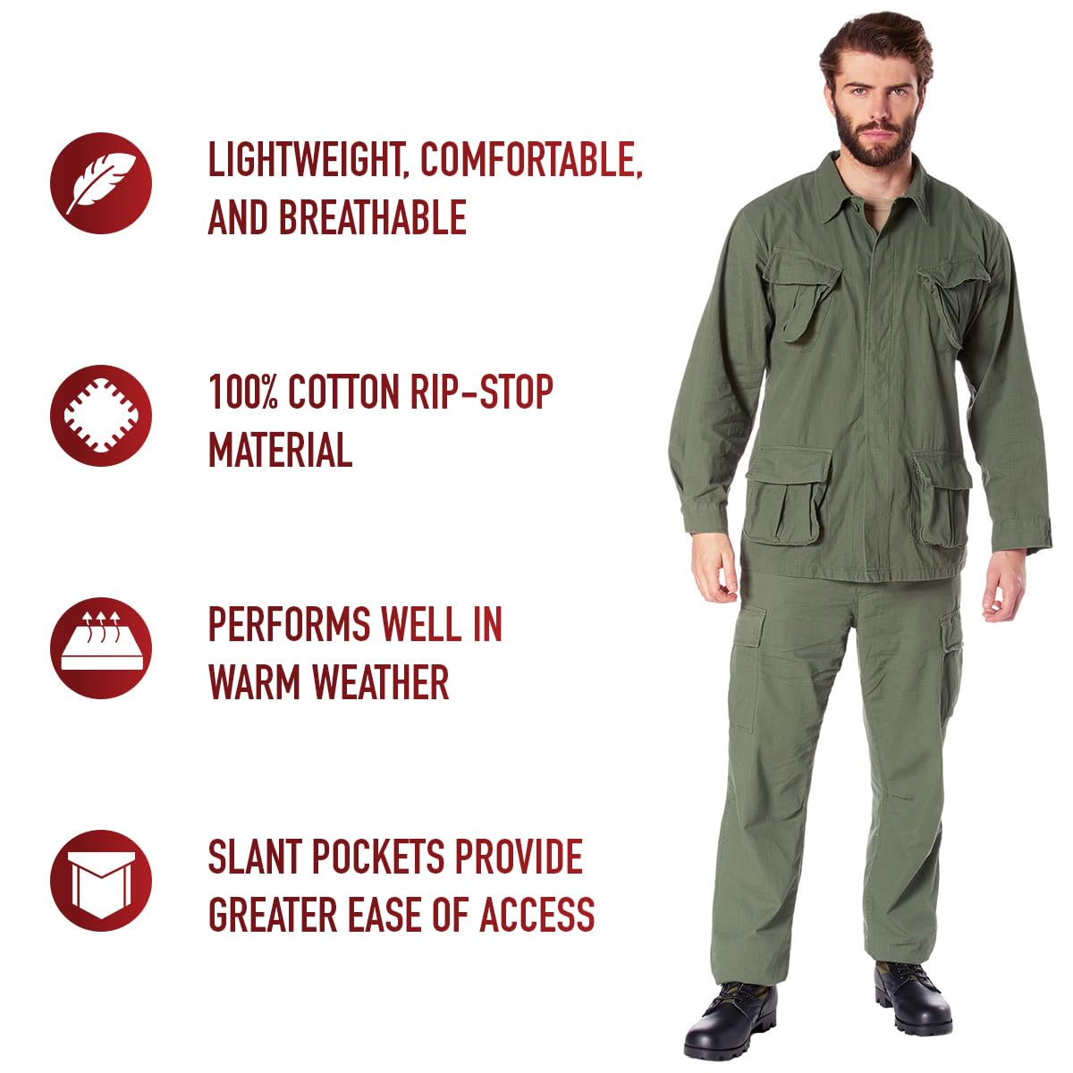 Classic Heritage: Embrace the comfort and style of vintage American attire with Rothco's Vintage Vietnam Fatigue Shirt.