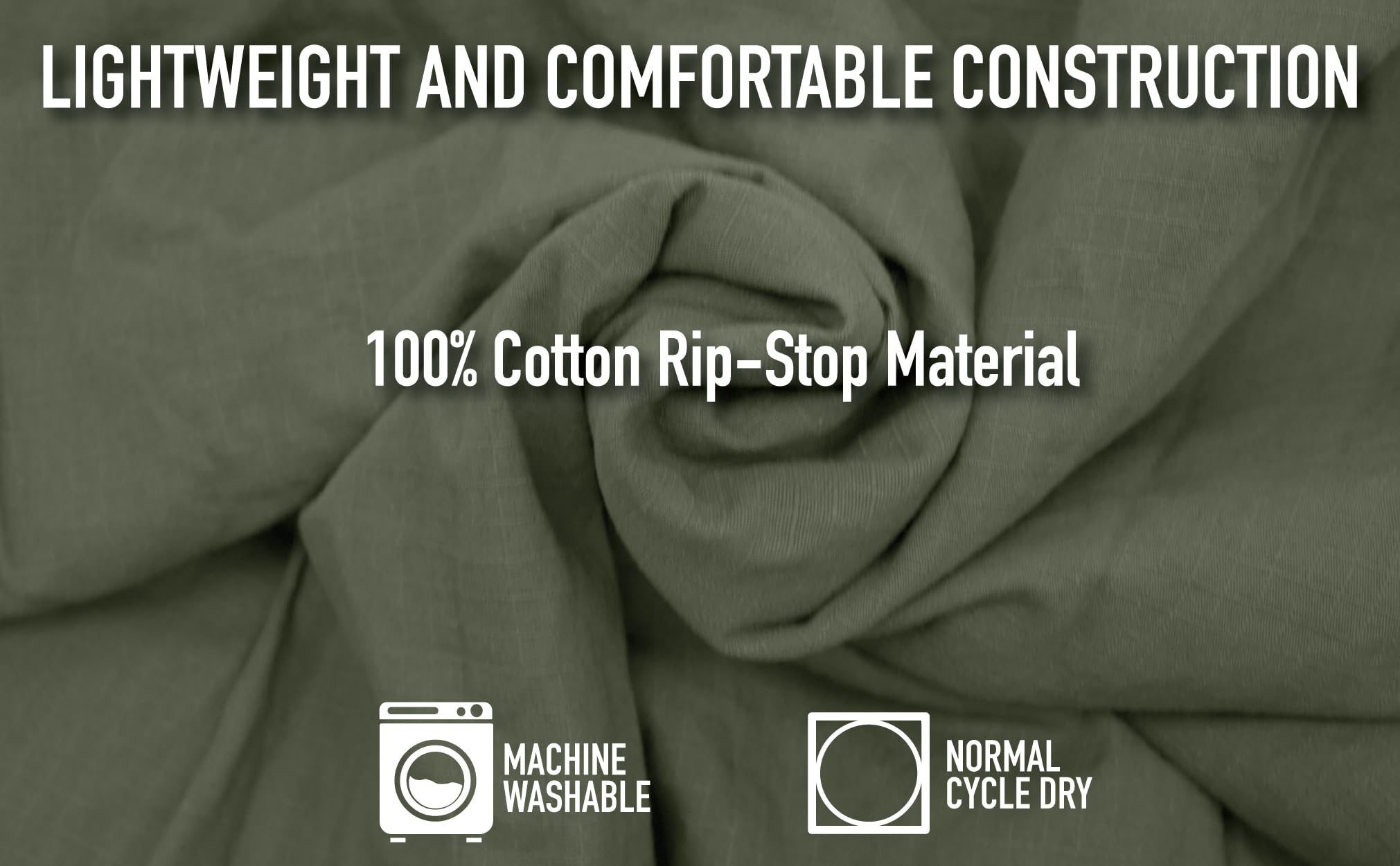 Breathable Fabric: Made from durable 100% cotton rip-stop material, ensuring comfort throughout a day of work or play.