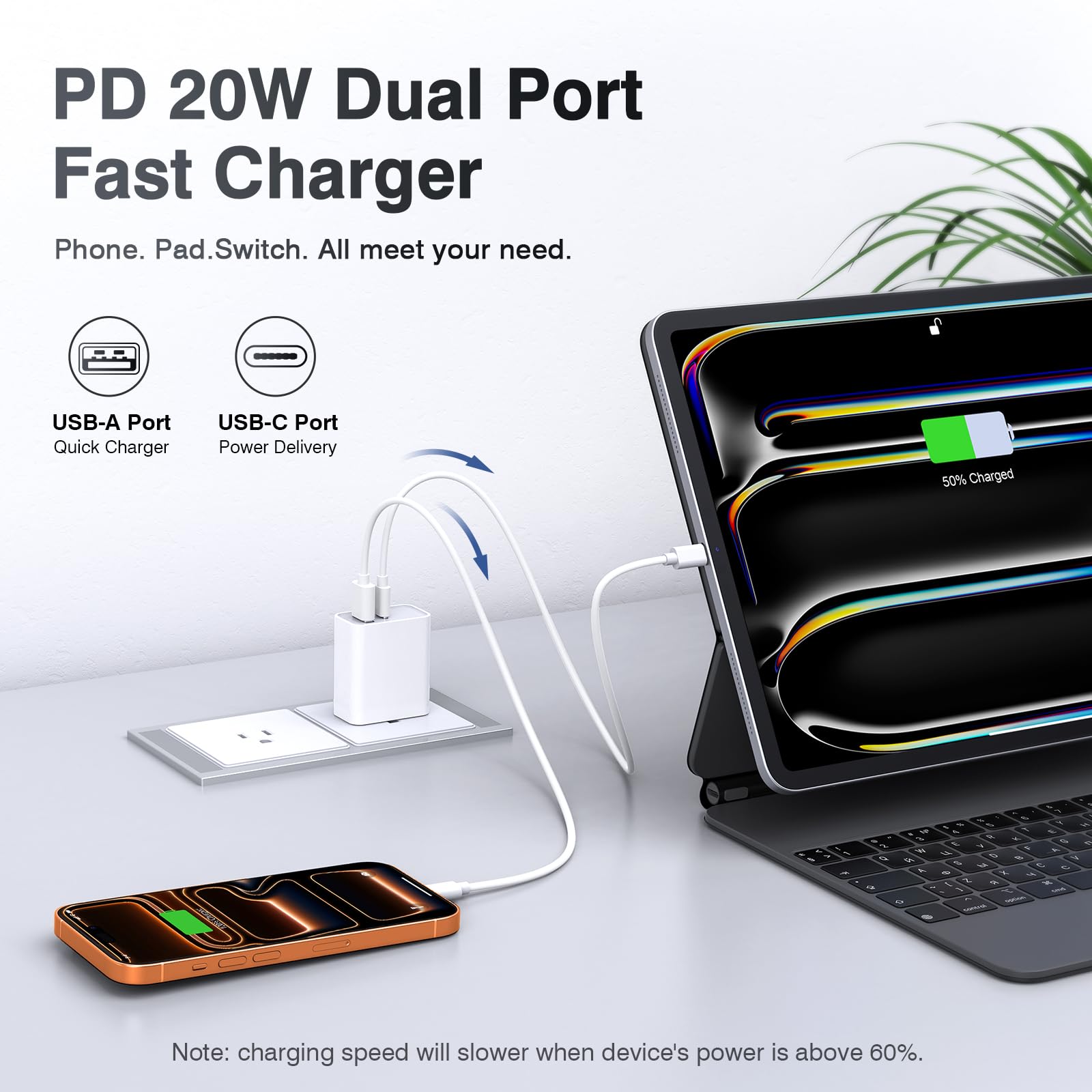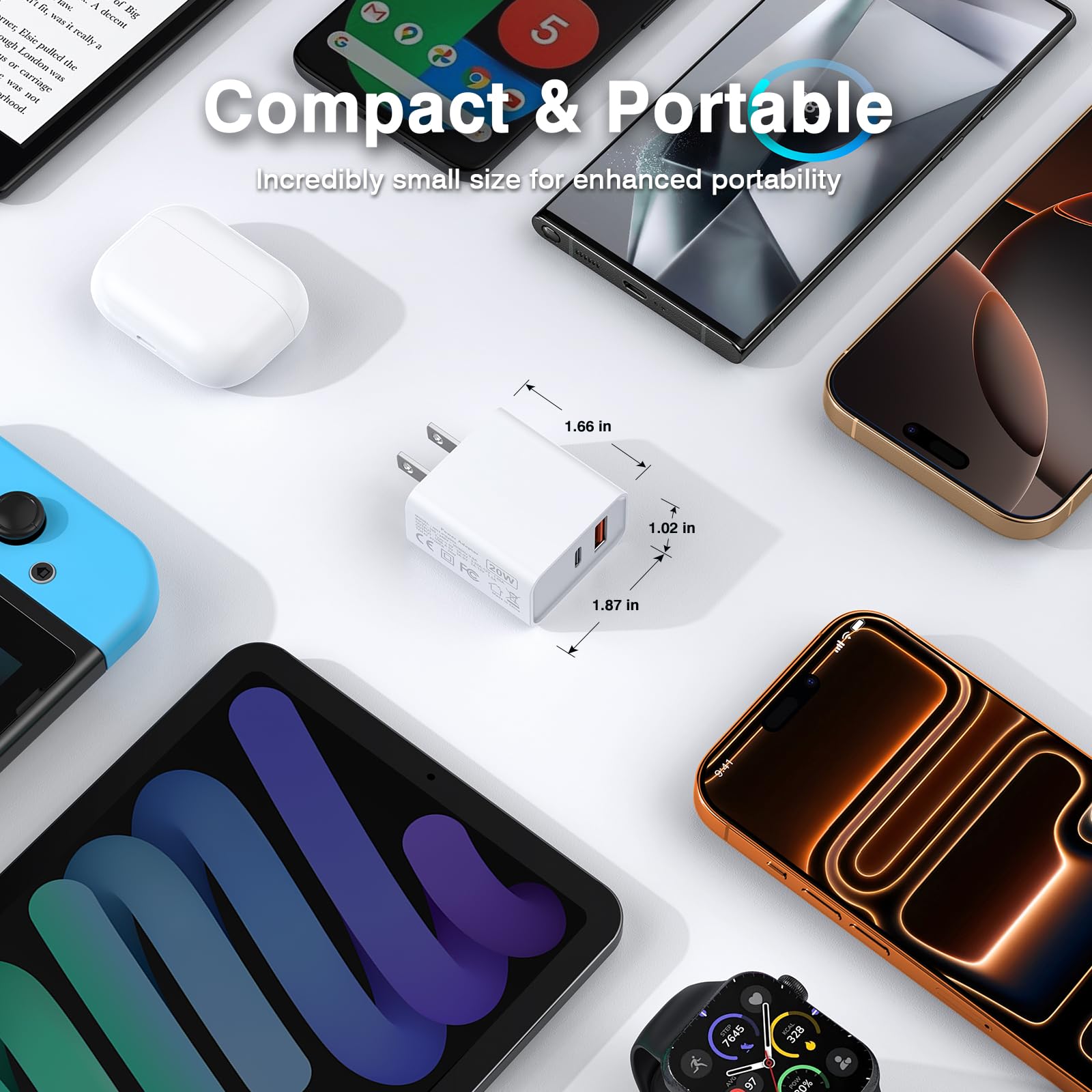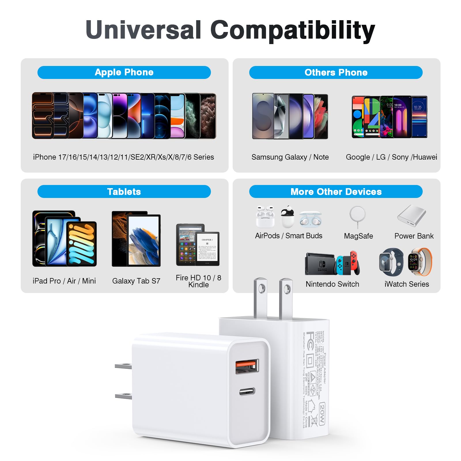 Universal Compatation: Designed for iPhone 17/16/15/14/13/12/11 Pro/ Pro Max. The USB charging adapter is compatible with iPhone, iPad, iPod, smartphone, MP3 / MP4 players, play equipment, GPS devices, PC tablet, Google Nexus Tablet, Samsung Galaxy Tab and other digital devices compatible