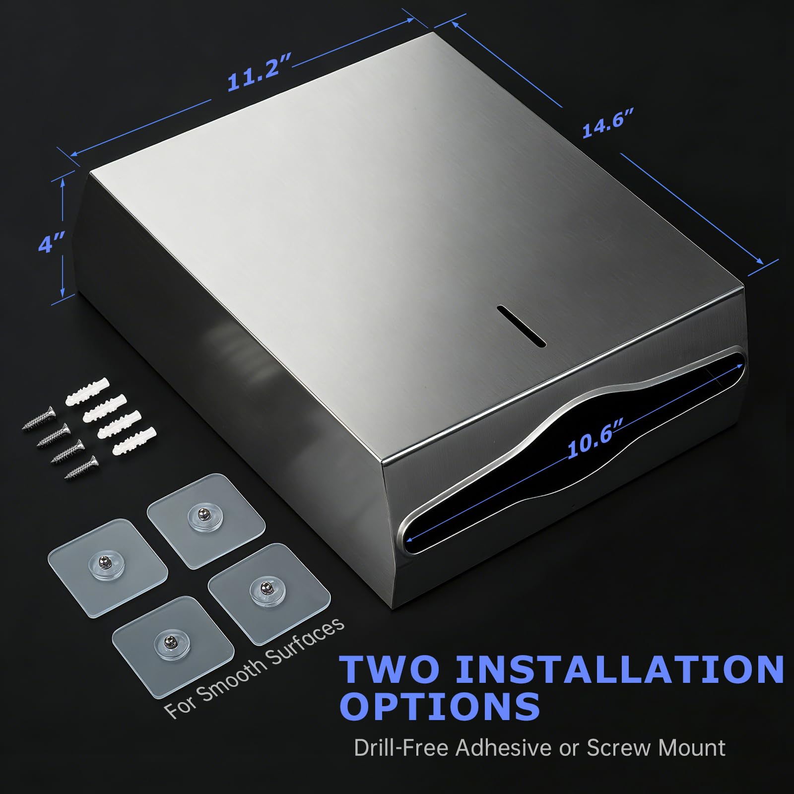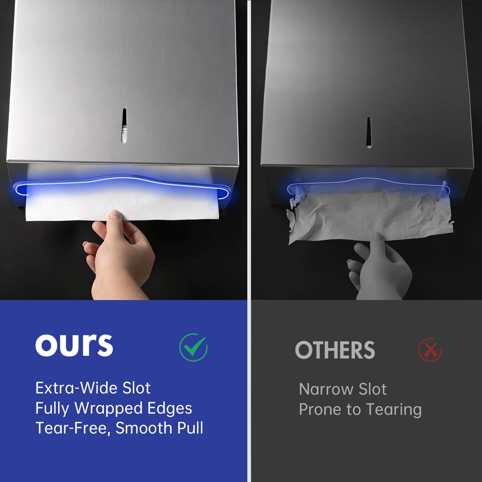UPGRADED EXTRA-WIDE SLOT – Features a 10.6'' wide outlet with fully wrapped edges for smooth, tear-free dispensing. Paper towels pull out easily without ripping, minimizing waste.