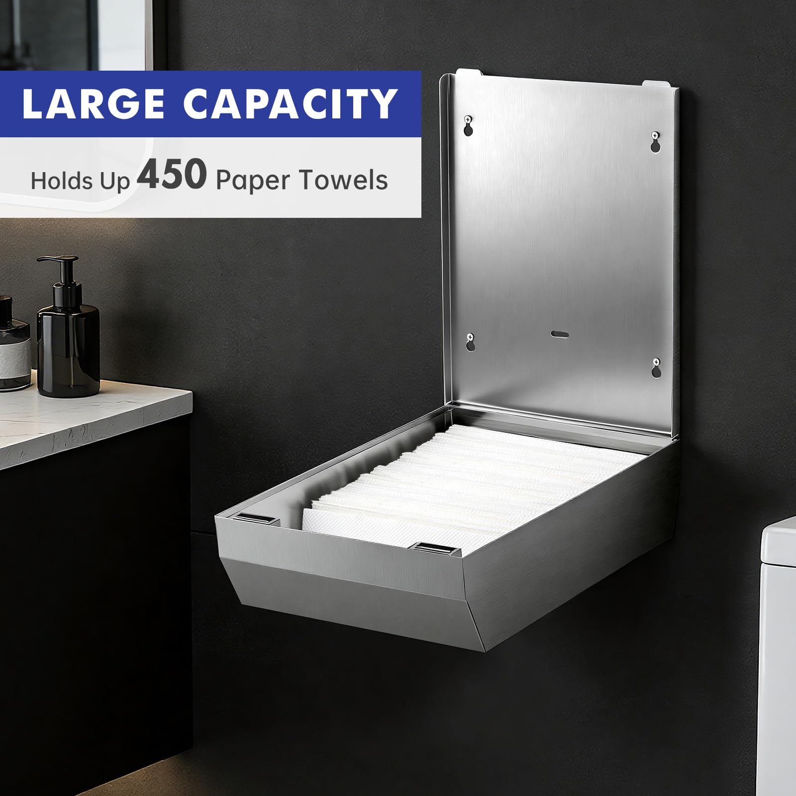 LARGE CAPACITY – Holds up to 500 multifold or 400 C-fold paper towels, reducing refill frequency. Compatible with most standard folded paper towels on the market.