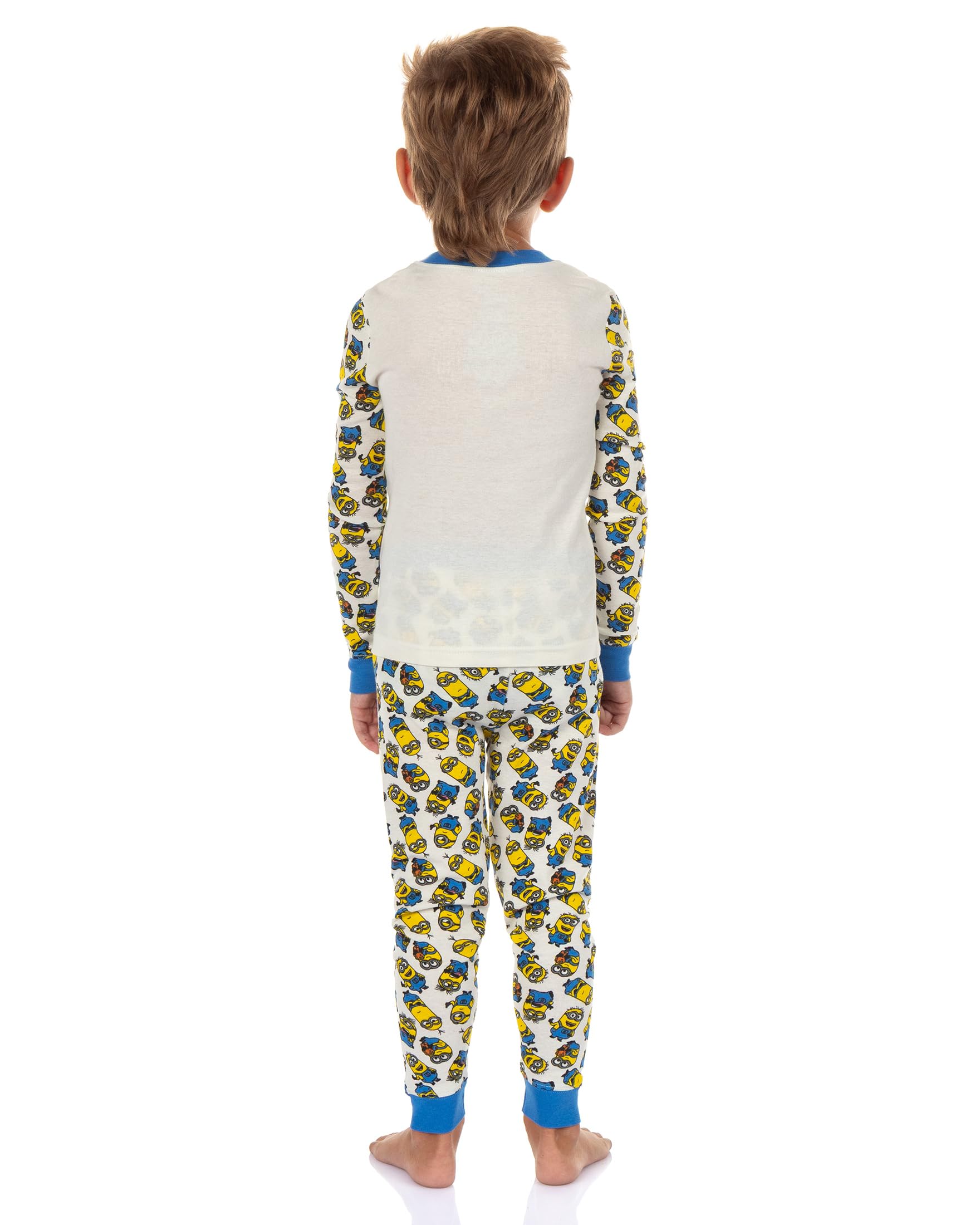 Description Getting your little one ready for bed is easier when they want to wear pajamas. This boys' Minions PJs set brings bedtime to life with a big, bright graphic of Carl holding his teddy bear and the phrase βThe Snuggle is Real.β The matching pants and sleeves feature a playful allover Minion print, so your child can go to bed feeling cozy and cheerful. Made with 100% cotton, this sleepwear is soft, breathable, and designed to fit snugly for safety. The long sleeves, ribbed cuffs, and full-length pants help keep them warm through the night, while the covered elastic waistband ensures everything stays in place. This set is machine washable and easy to care for, so itβs ready whenever your child asks to wear it again. It is not flame-resistant.