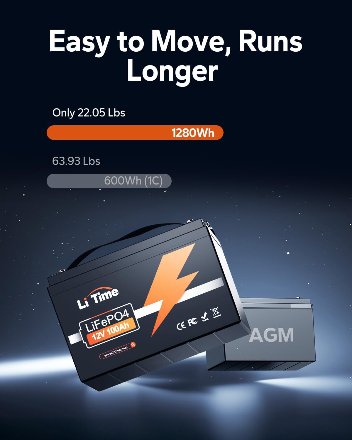 Lightweight & Easy to Move: Just 24.25 lbs (1/3 lead-acid’s weight). Effortless transport, installation, repositioning—saves strength and hassle.