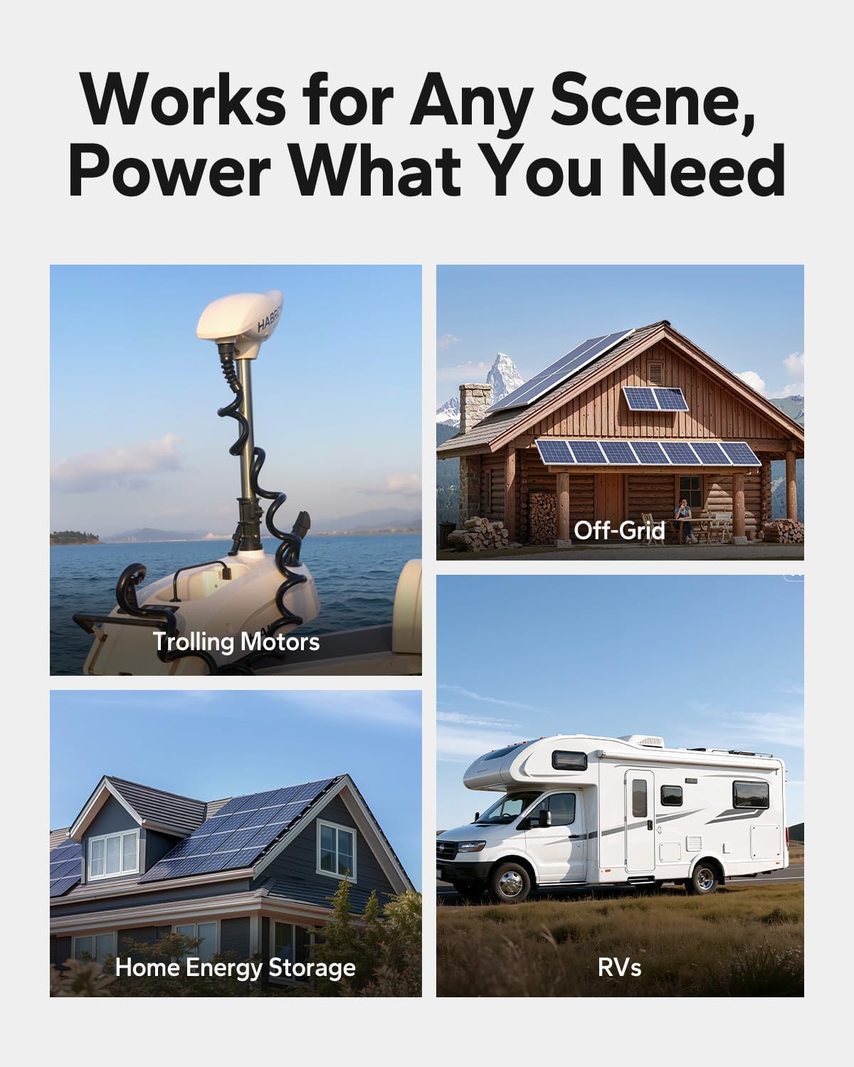 Expandable to 20.48kWh: Scales to 4P4S (51.2V 400Ah) for RVs, home backup, 30-70lb trolling motors—grows with your power needs.