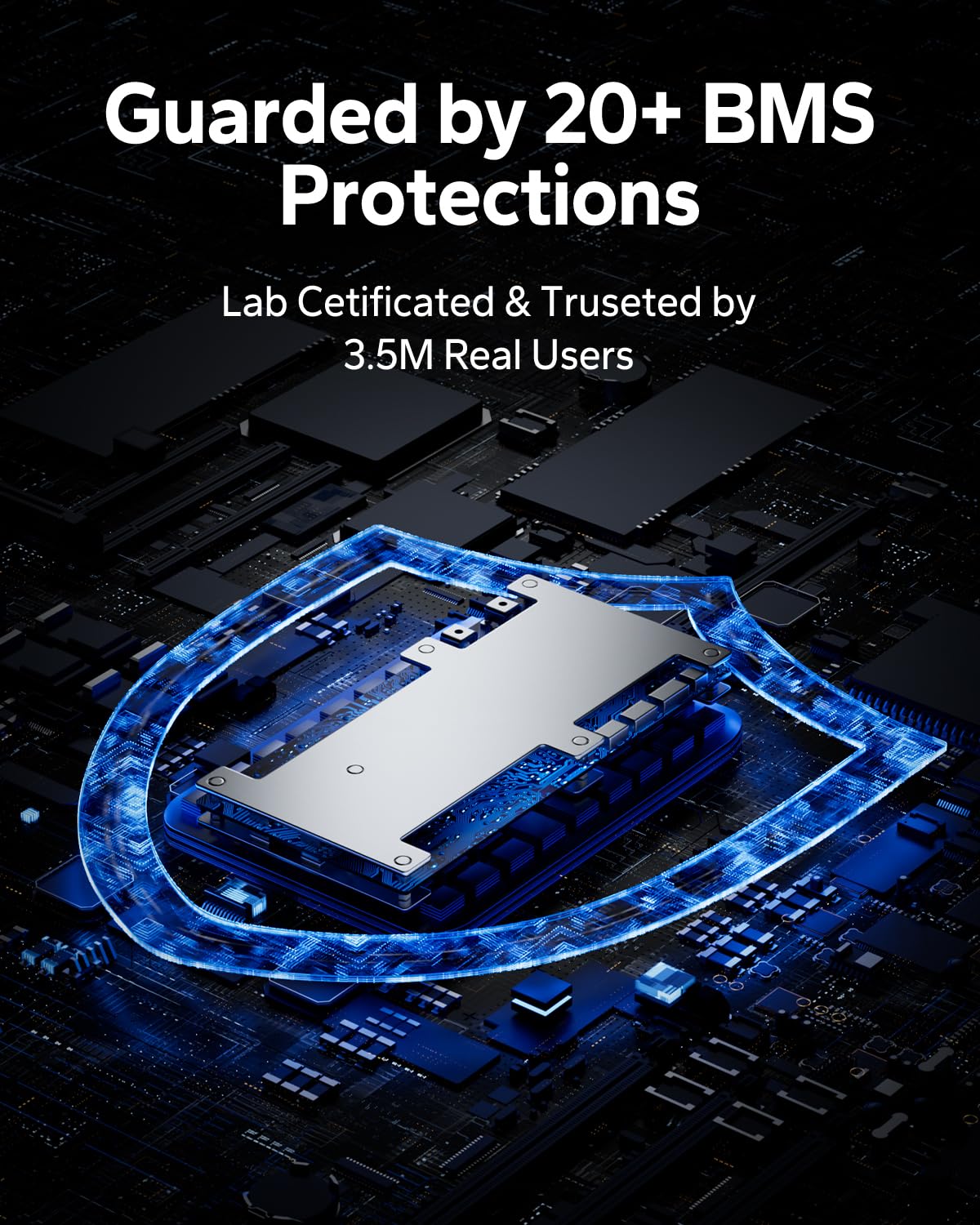Multi-Protection BMS: 20+ safeguards (overcharge, over-discharge, etc.) ensure long-lasting performance, extending life for reliable, continuous use.