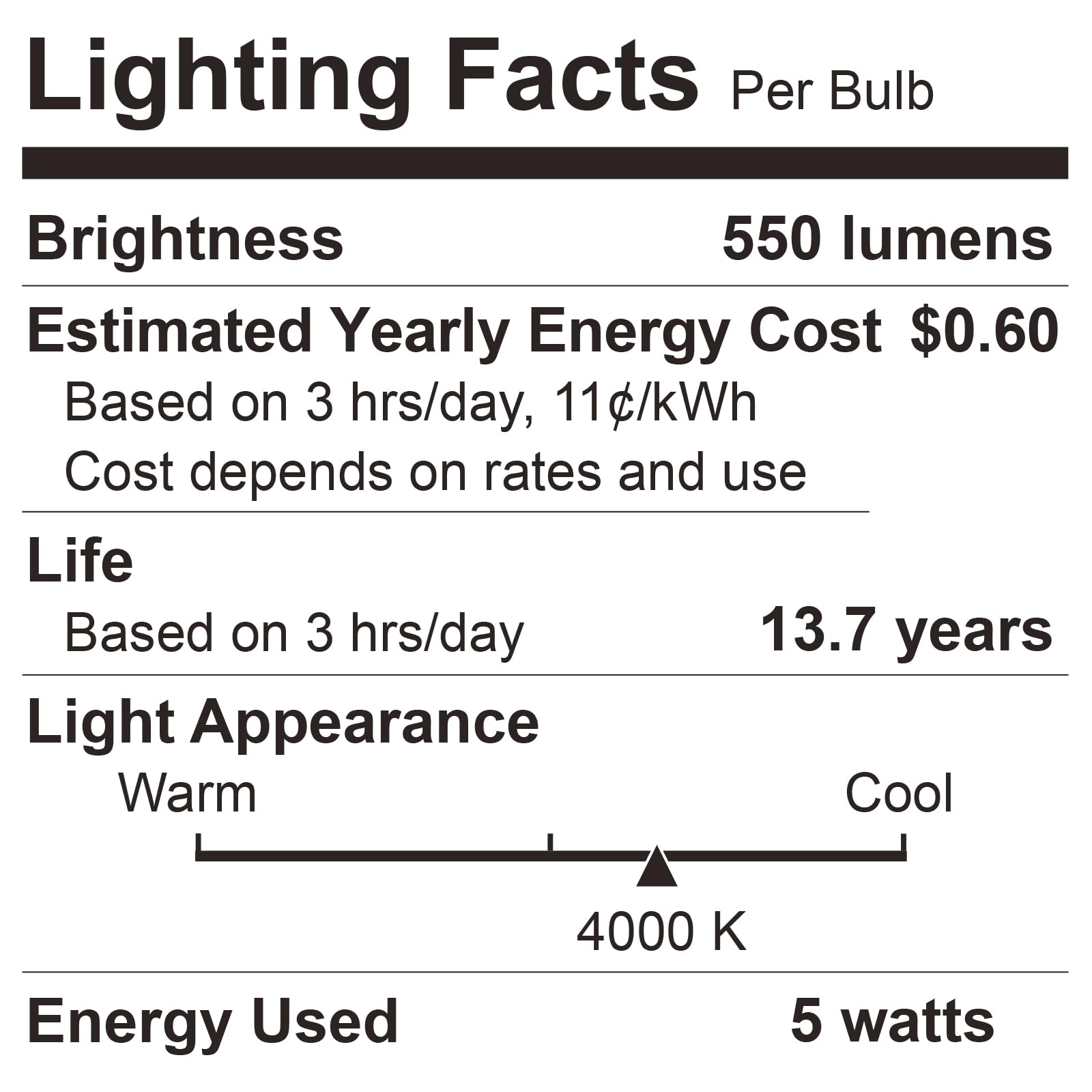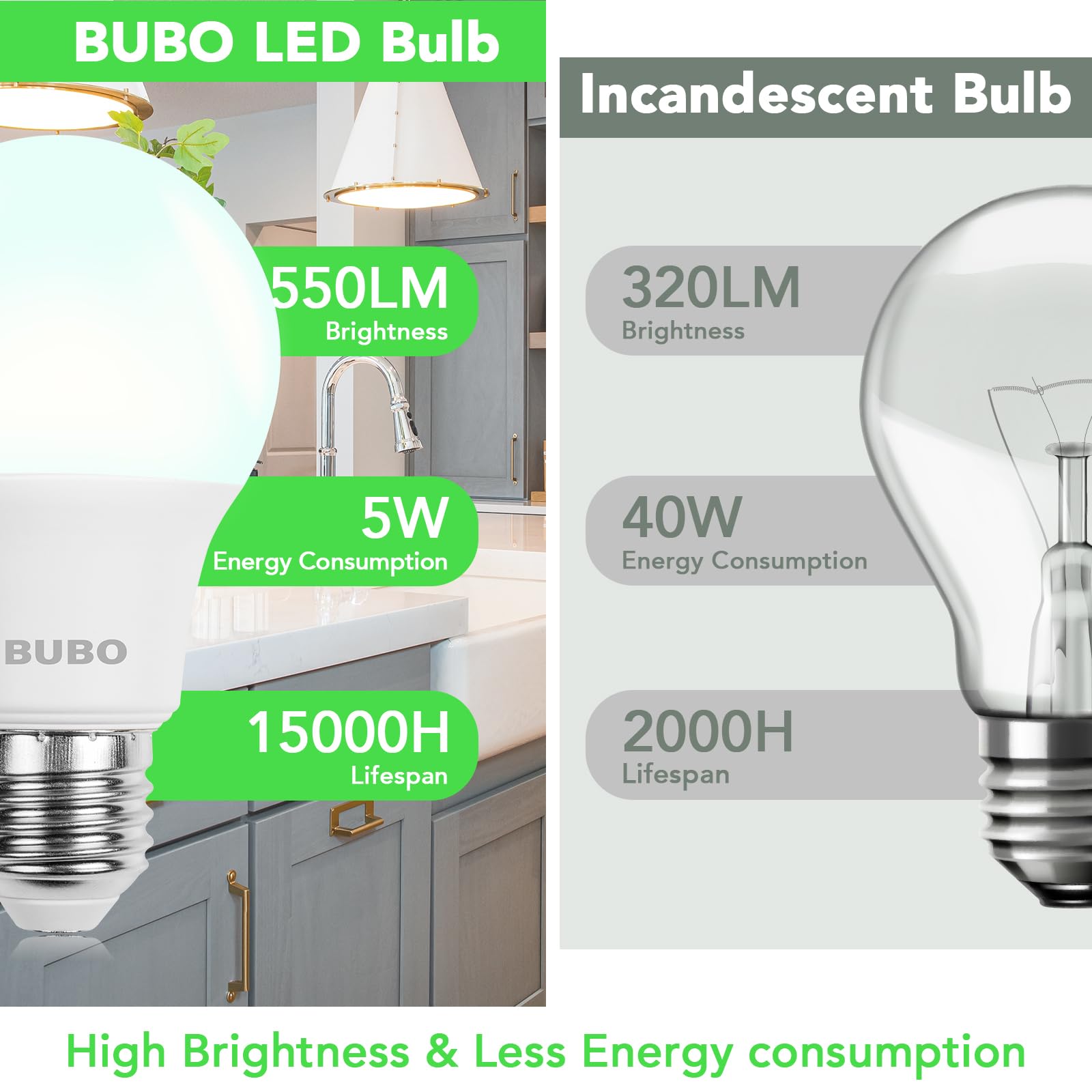 Energy Efficient:Consuming only 5 watts, BUBO A19 40W LED bulb delivers the equivalent brightness of a 40W incandescent, helping you decrease the energy costs significantly.