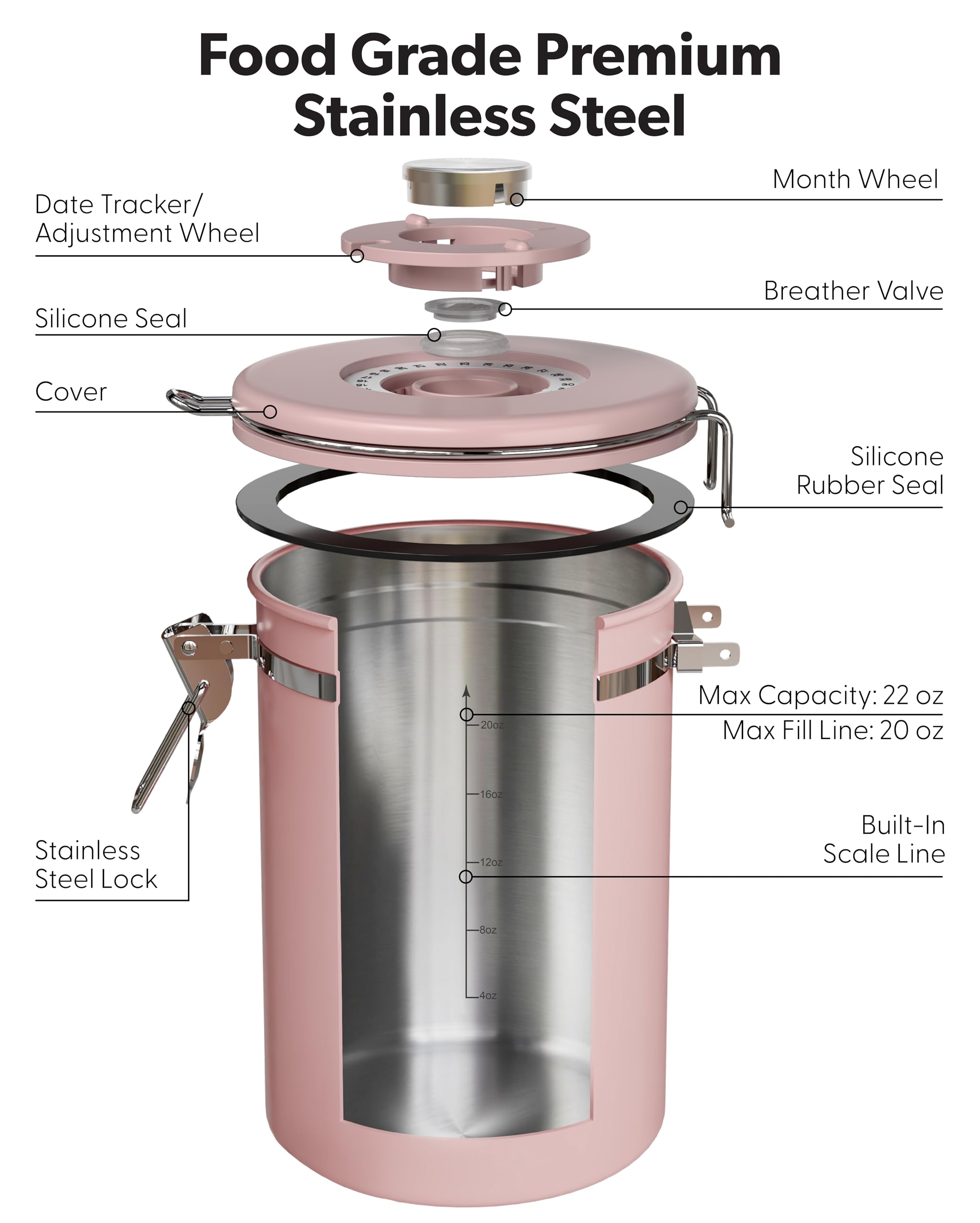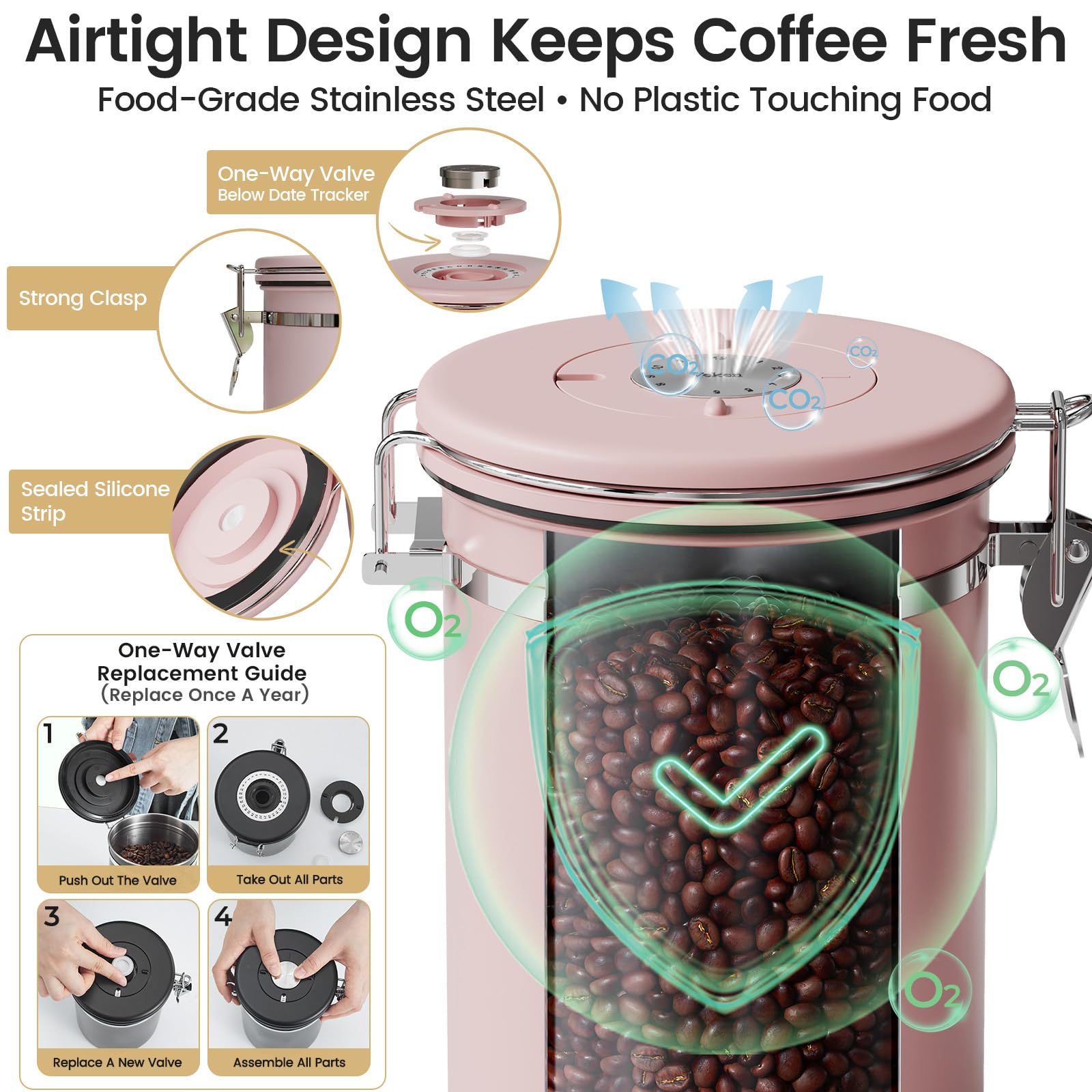 Freshness is Everything:Our coffee canister helps maintain the freshness of your coffee beans by keeping air out and free of harmful oxidation with a one-way CO2 valve and silicone rubber seal