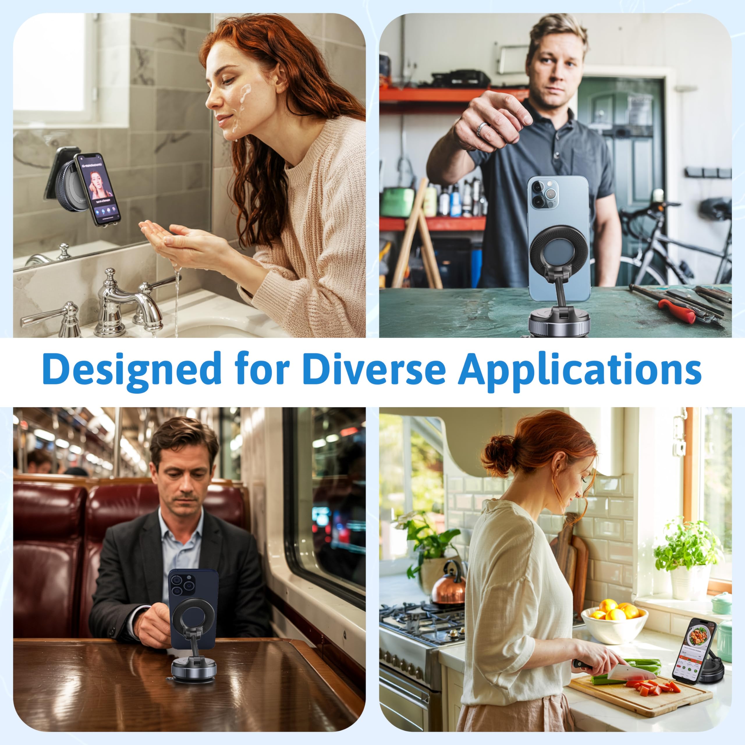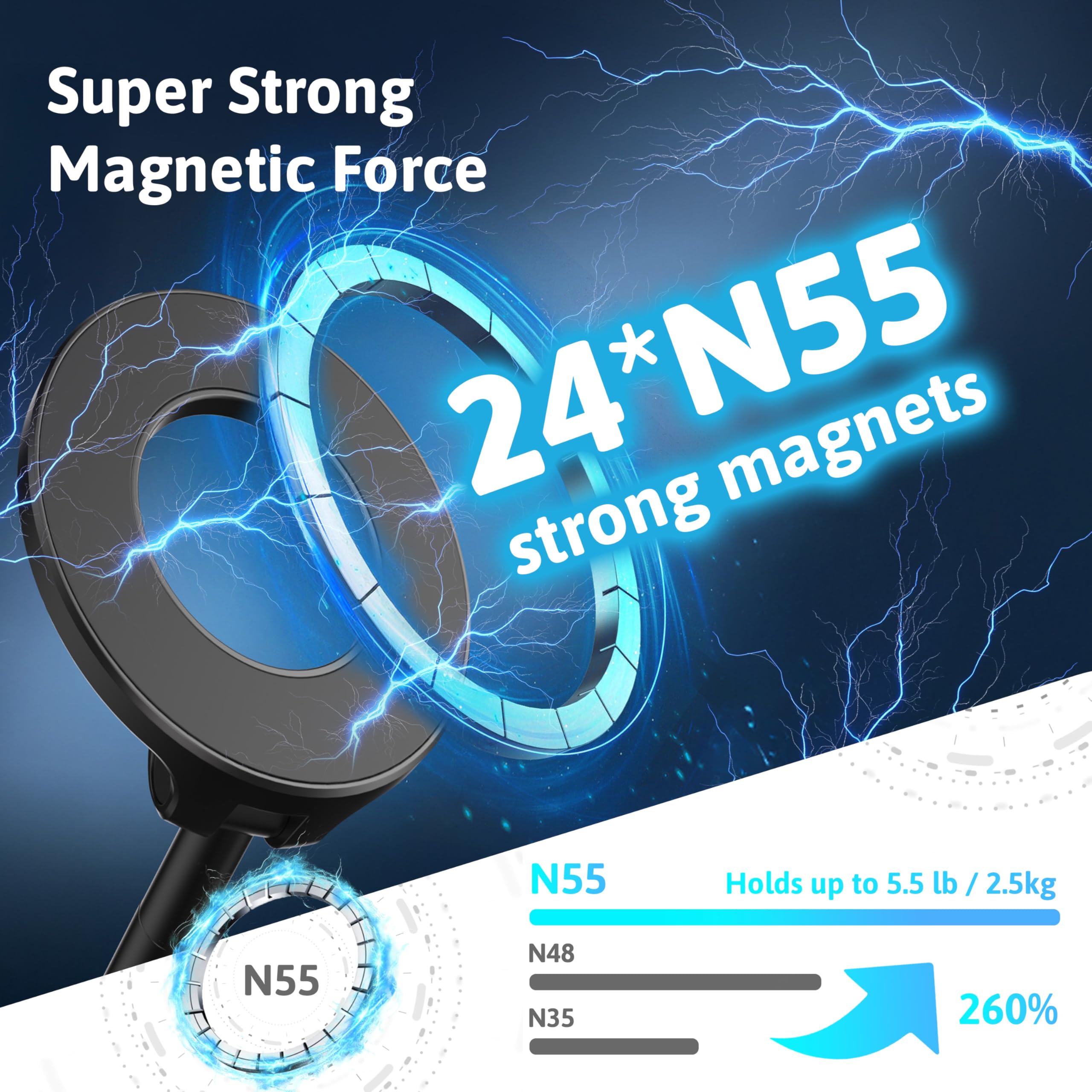 𝗨𝗻𝗶𝘃𝗲𝗿𝘀𝗮𝗹 𝗗𝗲𝘃𝗶𝗰𝗲 𝗖𝗼𝗺𝗽𝗮𝘁𝗶𝗯𝗶𝗹𝗶𝘁𝘆 – Supports iPhone 16 Pro Max/Pro/Plus/16 to iPhone 8, Samsung Galaxy S22/S21/S20, Note 20/10 Plus, and more. Includes a magnetic ring for non-MagSafe phones/cases. Holds phones up to 3mm thick with 2800gf magnetic force.