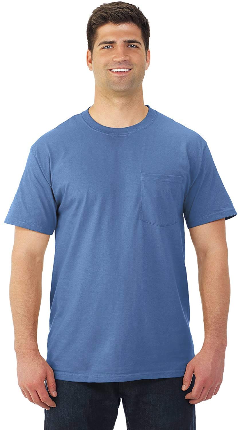 Description Our men's pocket t-shirts are a casual wardrobe staple that you are going to love to live in. Featuring a tag free collar, super soft cotton and reinforced pocket, the Fruit of the Loom Men's Pocket T-Shirts are designed for comfort and made to last. Live your life more comfortably with Fruit of the Loom Men's Pocket T-Shirt. Each shirt wicks away moisture so you can stay cool and dry.