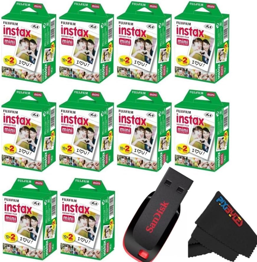 PACKAGE CONTENTS: Includes multiple twin packs of instant film, providing great value and extended shooting capacity. USB Flash Drive : A portable 32 GB USB stick for storing digital files. PixiBytes Microfiber Cleaning Cloth: A soft, reusable cloth for cleaning lenses, screens, or prints. Keeps your camera lens, viewfinder, or even your printed photos free of dust, fingerprints, and smudges.