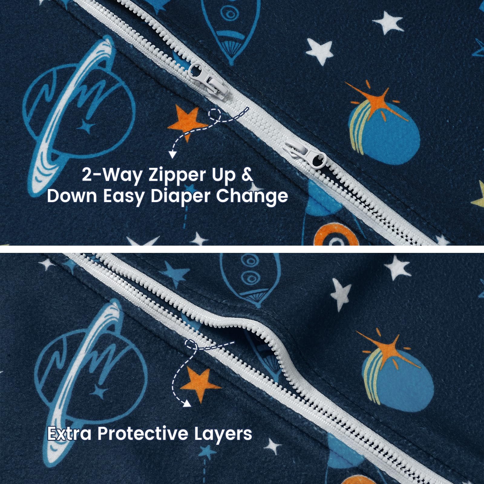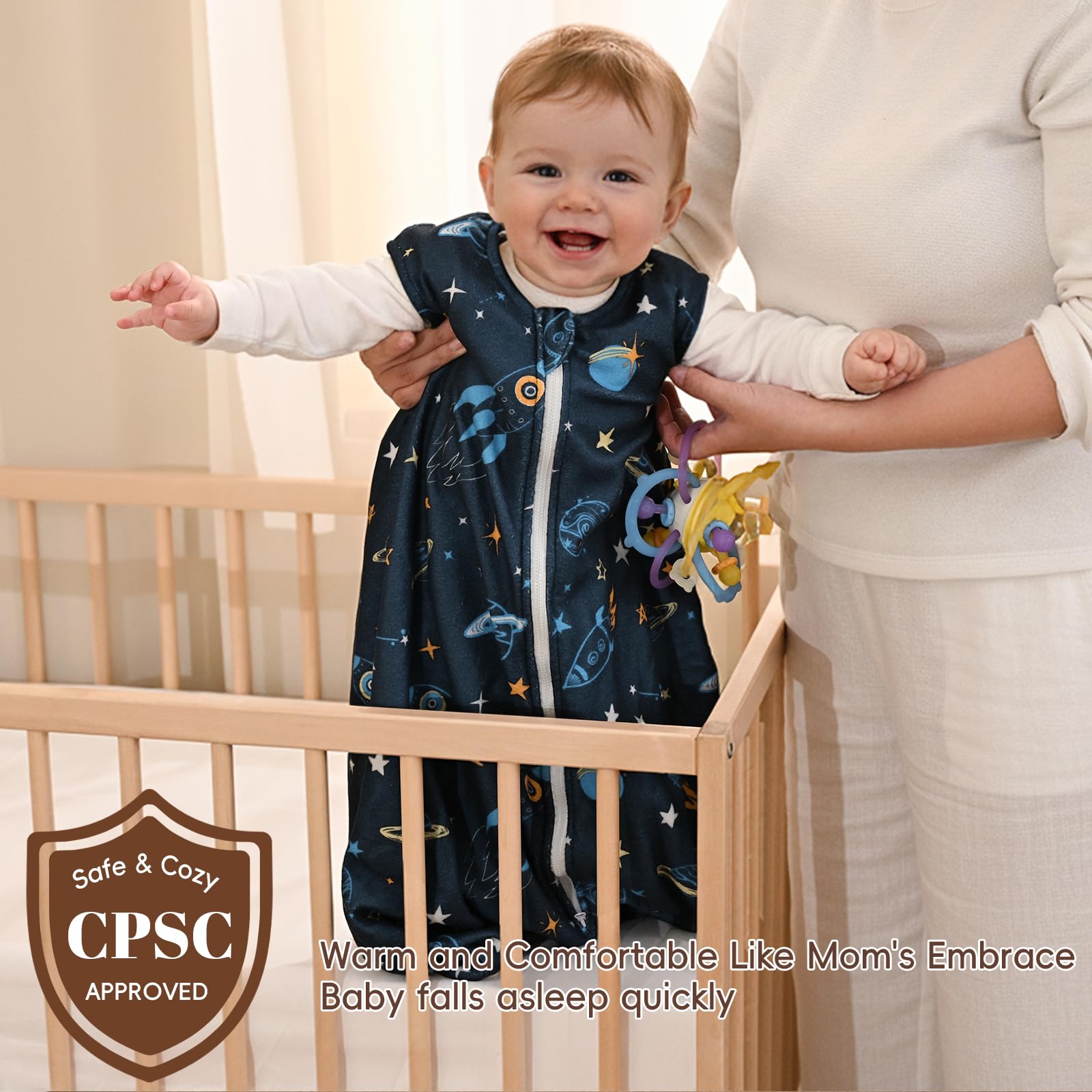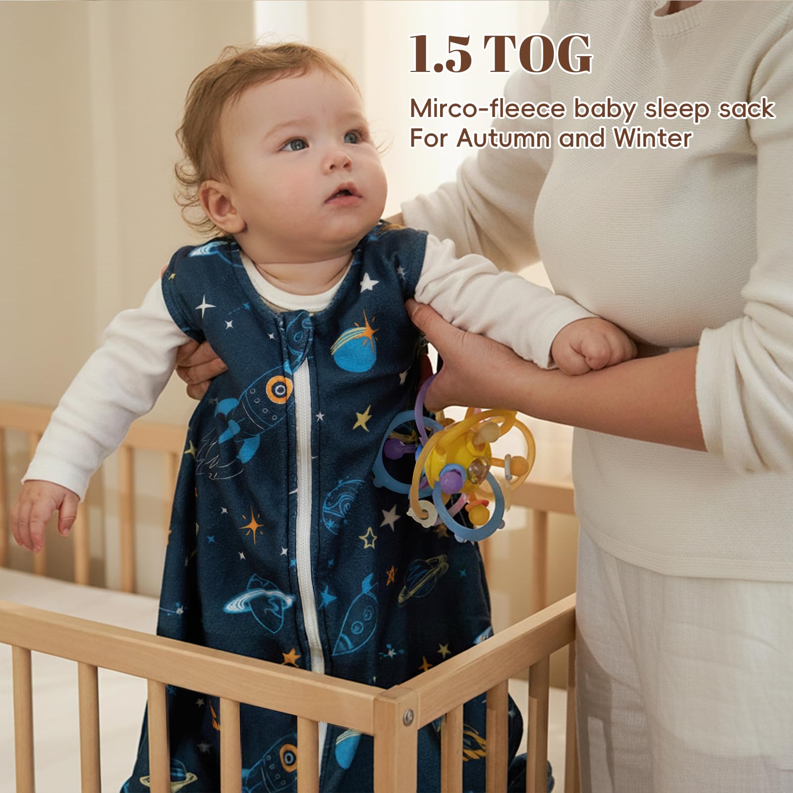 Our baby wearable blankets are made of 100% polyester micro-fleece that is very soft and gentle on babies' delicate skin. The skin-friendly fabric with 1.5 TOG makes them the perfect choice to keep your little one warm and comfortable during cold winter nights. Our baby sleep sacks are breathable and moisture-wicking, so your baby can enjoy a full night of restful, uninterrupted sleep. Our baby wearable blankets are Essential Baby Item for everyday use.