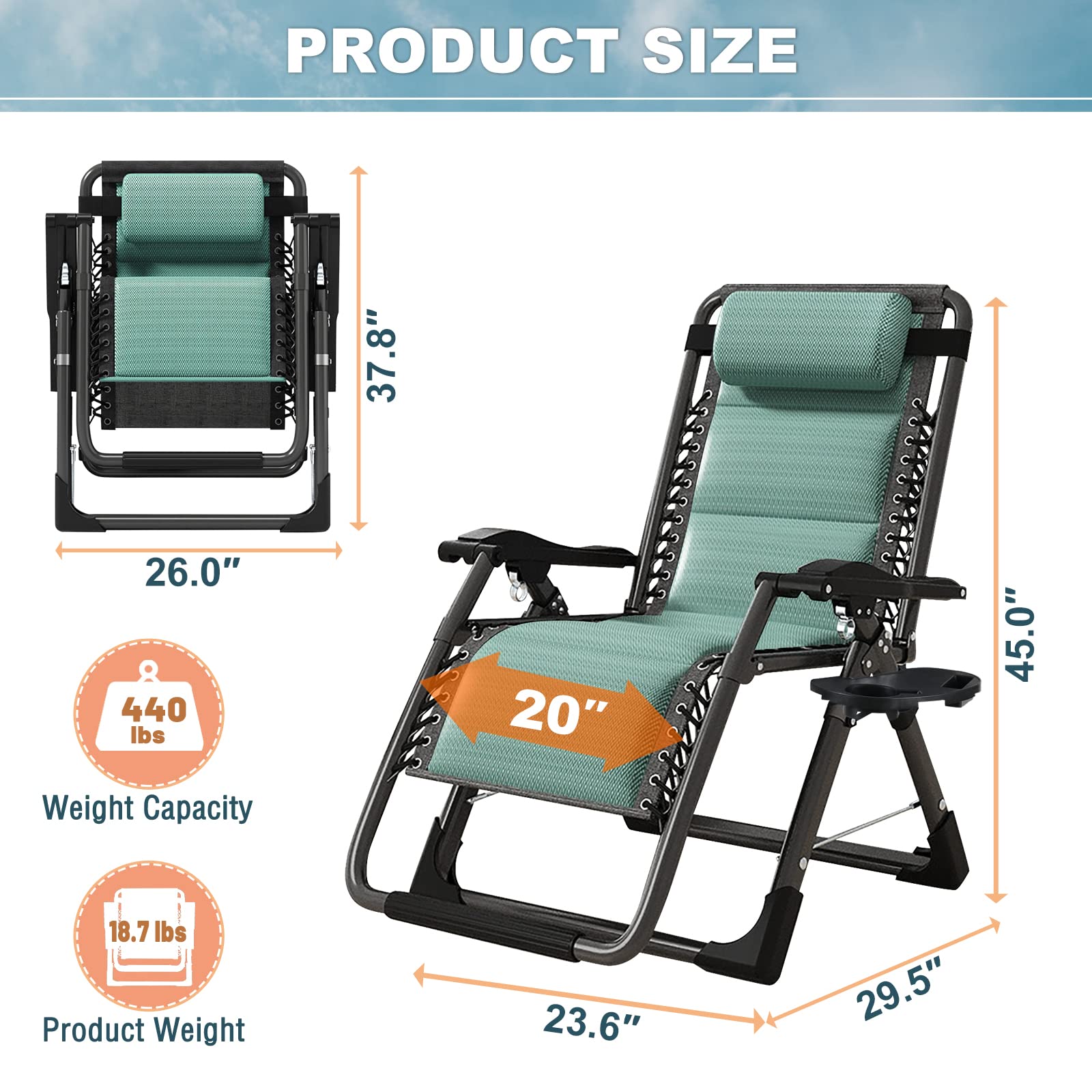 Built to Last: Supports up to 440 lbs; constructed with a thicker frame for enhanced durability; made from premium materials for long-term use; backed by over 10 years of experience in gravity chair manufacturing