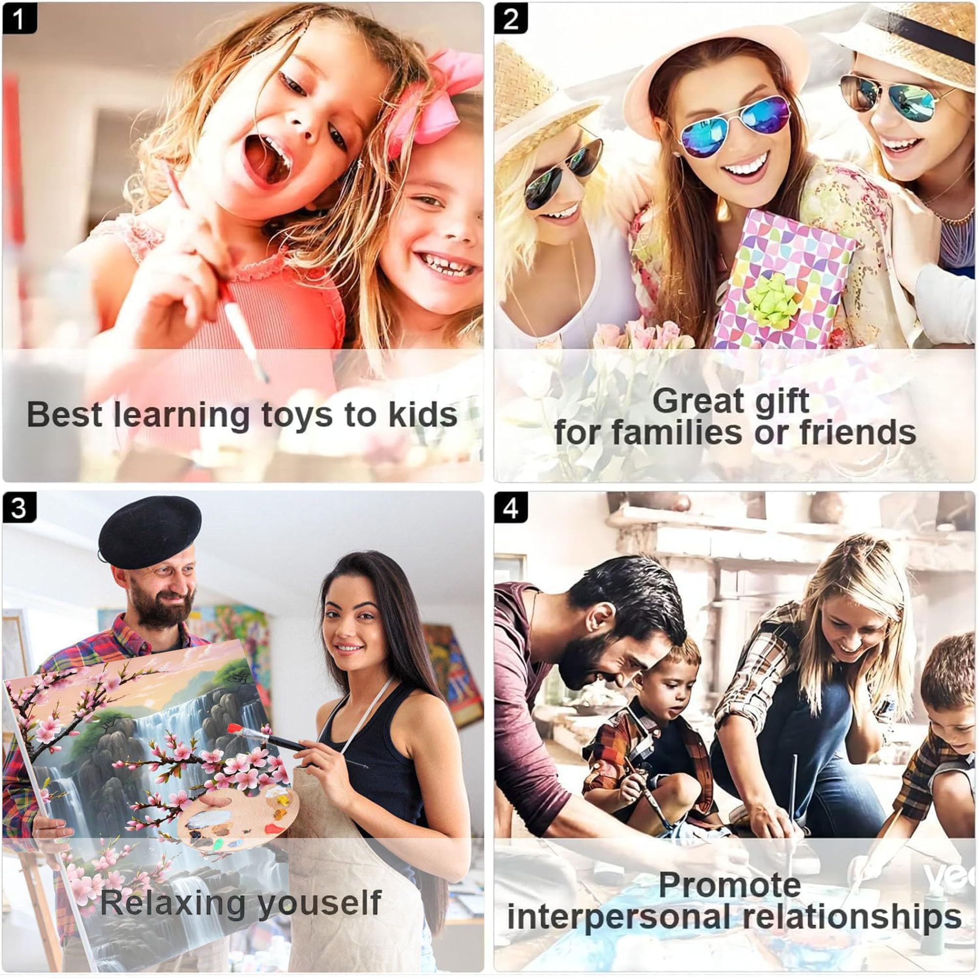 Meaningful Decoration and Gift:paint by number can become an excellent decoration for your home,bring different colors to your home.In addition to this,it is also a great gift for friends and family on birthdays,Thanksgiving,Christmas and so on