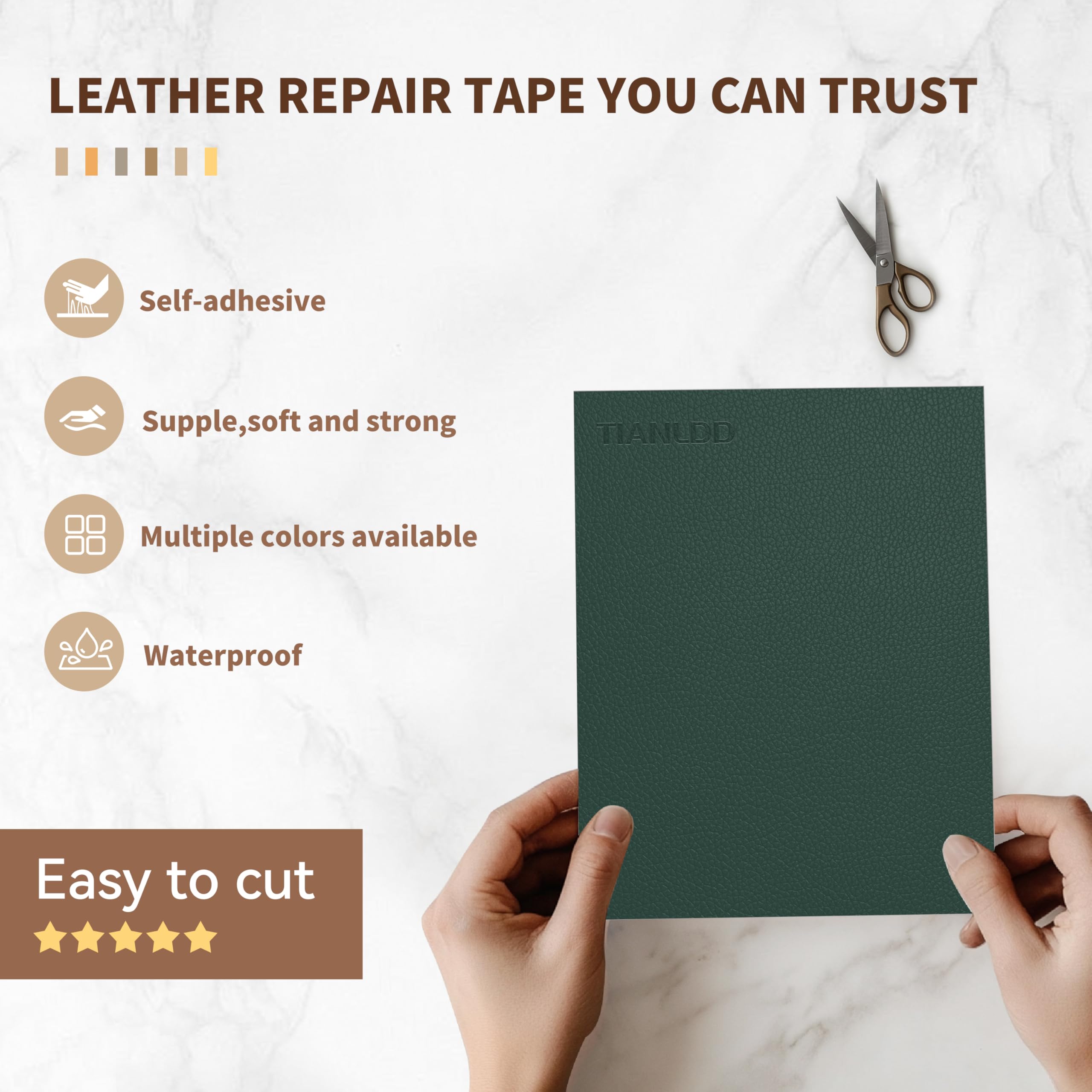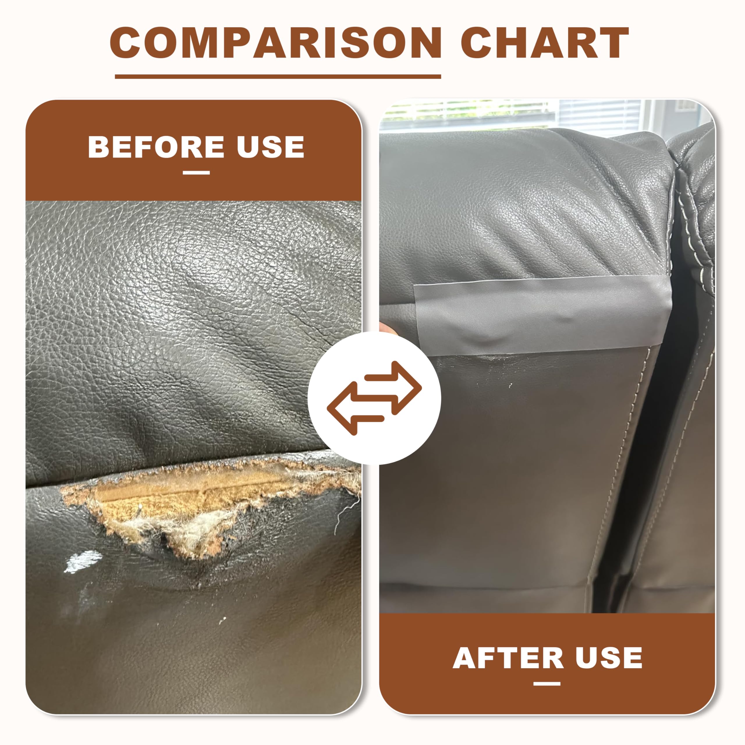 Self-adhesive & Easy to Use:Simply peel off the backing paper on the back of the leather patch tape and stick the patch on the sofa to perfectly repair all kinds of damages. The patches have strong adhesive force and soft texture, whether it is the edge of the seat, or curved uneven surface, it can be perfectly