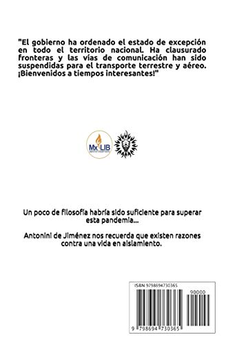 Un poco de filosofía habría sido suficiente para superar esta pandemia...Aquí un libro indispensable en tiempos de pandemia. Una invitación a reflexionar, a detenernos a cuestionar nuestro momento histórico y valorar el tesoro más grande que constituye al ser humano: la libertad de pensamiento. El temor, la caricia de muerte con la que se presenta al COVID-19 ha ofuscado el saber y la voluntad de gran parte del mundo, pero también es una nueva oportunidad para confrontar esos fantasmas a través del diálogo, la reflexión y la filosofía. Hay razones contra una vida en aislamiento. Antonini de Jiménez, doctor en economía, profesor en diversas universidades americanas y del sudeste asiático, viajero infatigable, omnívoro lector y a veces un poquito neurótico, nos presenta en esta obra bellamente escrita, con prosa clara, elocuente y reflexiva, las razones que necesitamos para salir de ésta pandemia.