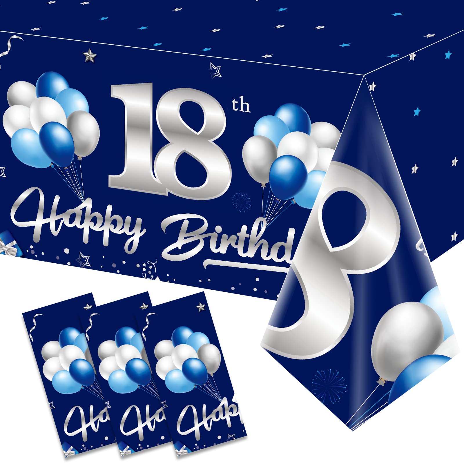 [3pcs] - Blue silver 18th birthday tablecloth decorations.108 * 54 inches, ideal size, suitable for most rectangular tables.