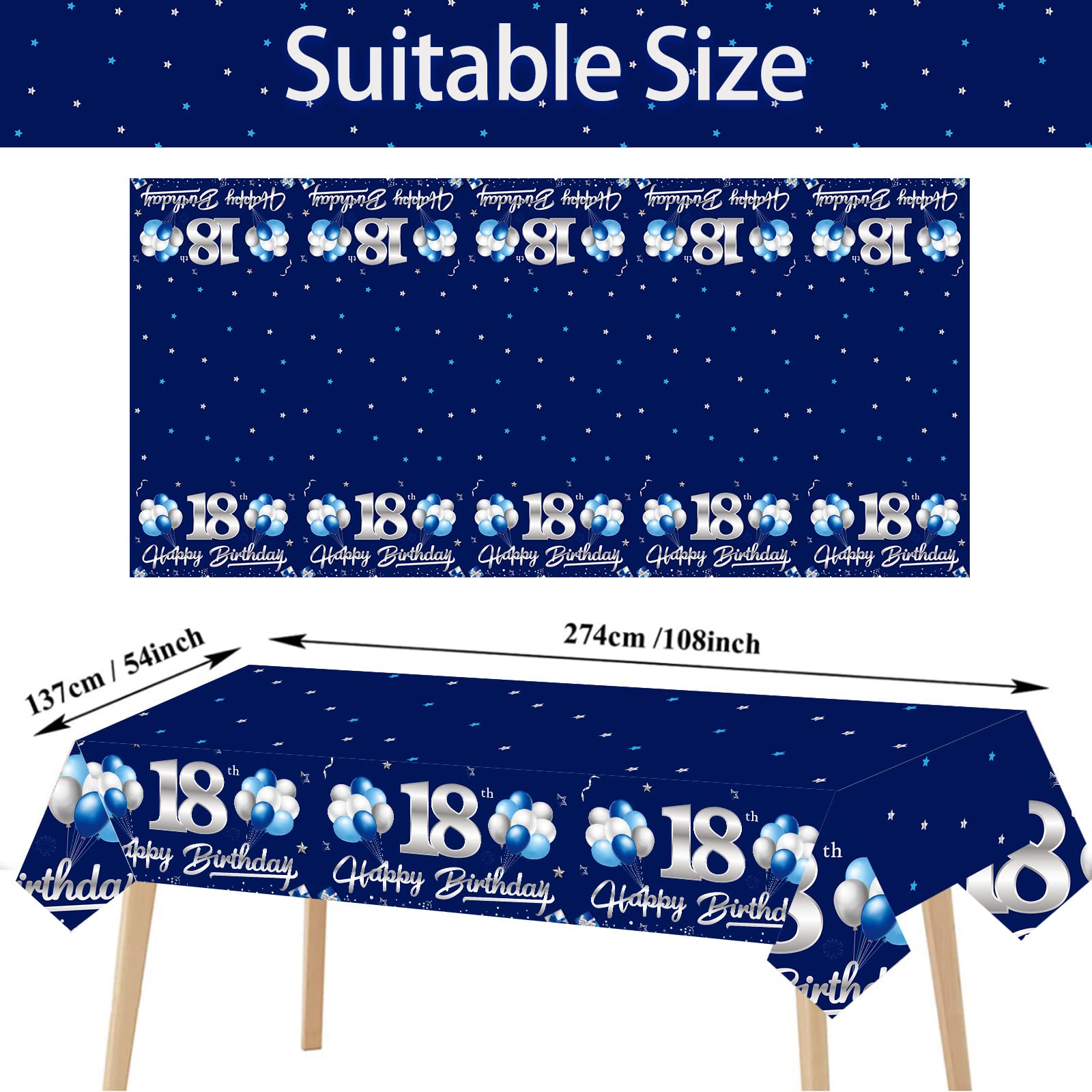 [Decoration theme] - Our blue silver 18th table cover is very suitable for birthday party decoration of 18 year old boys. The fashionable Blue silver theme tablecloth adds a touch of light to your party and attracts the guests' attention. In addition, it also matches a variety of birthday party elements, such as balloons, gift boxes, stars, ribbons, etc., to create a strong party atmosphere and give you an unforgettable birthday party experience.
