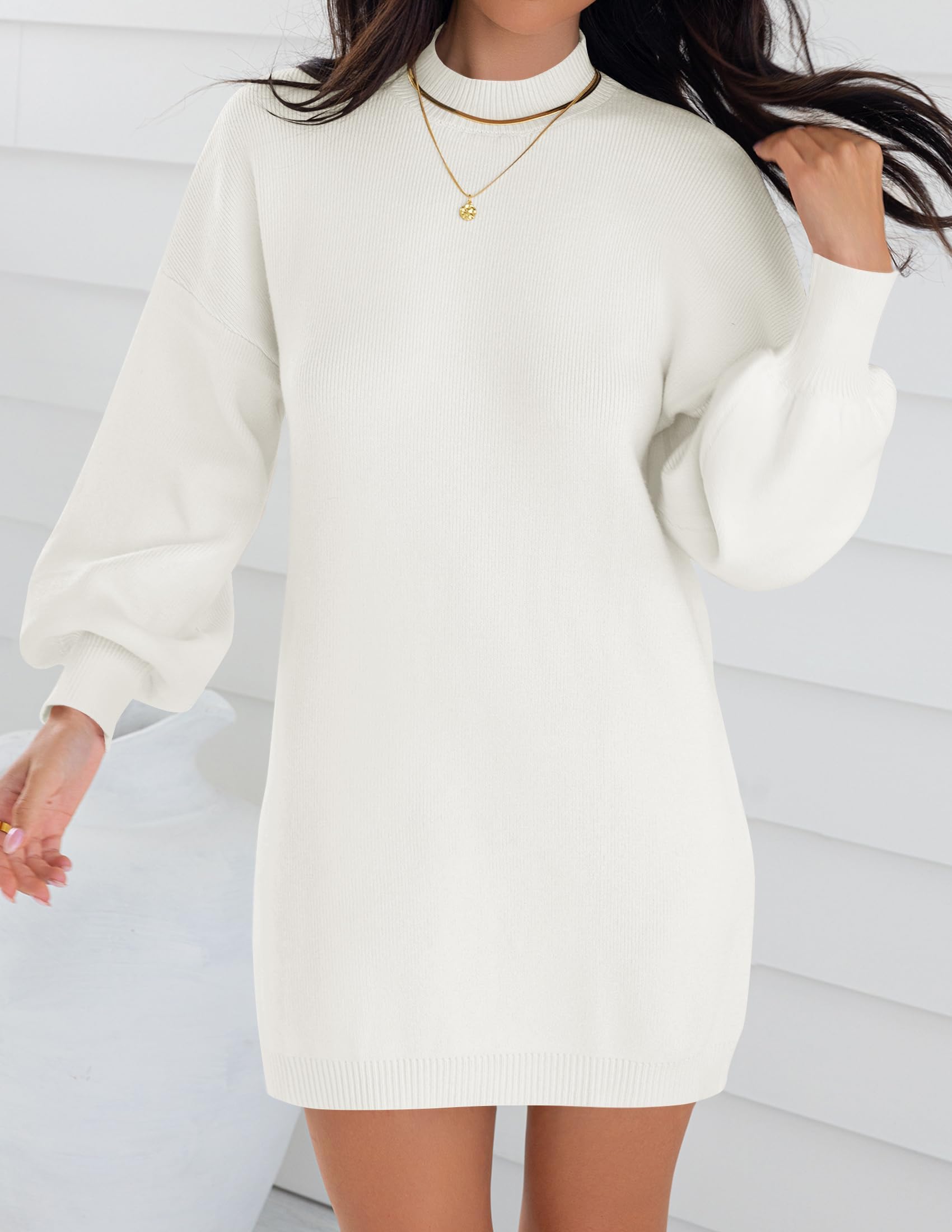 Sweater dresses for women 2025, mini dresses for women, fall sweater dress, lantern long sleeve dress, ribbed knit dress, mock neck, loose fit, classic solid color, above knee length, slouchy and baggy style, maternity dress, winter dress, cocktail party dress