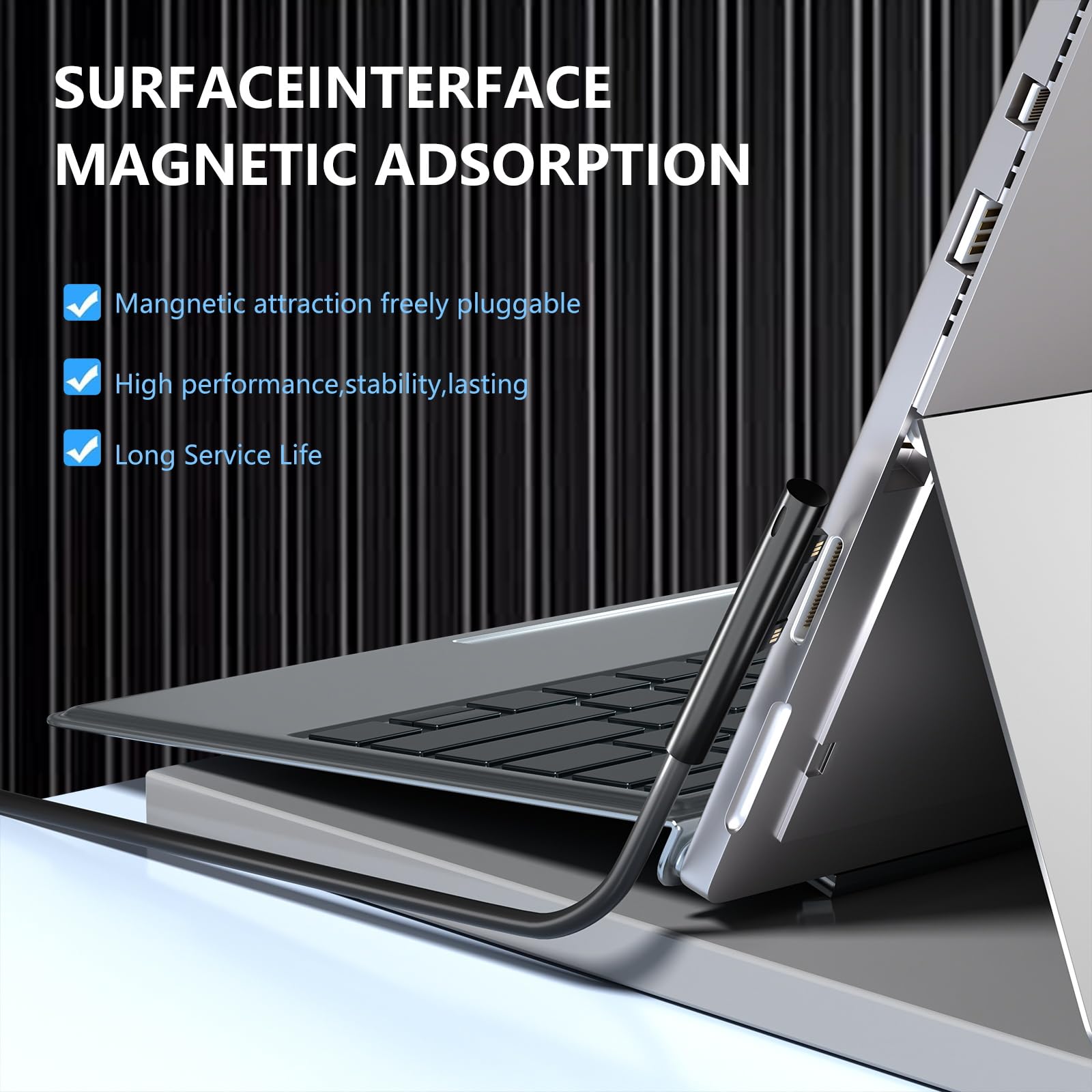 【Fast & Efficient Charging】44W 2 in 1 Surface Charger delivers high-speed charging, fully powering your Surface Pro only 2 hours. Surface pro charger built-in a USB Port that you can synchronous charging for your Laptop and usb device(phone) by using this charger.