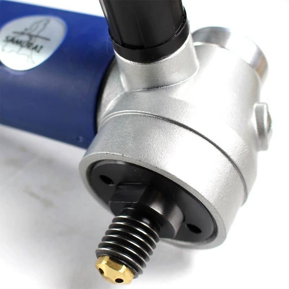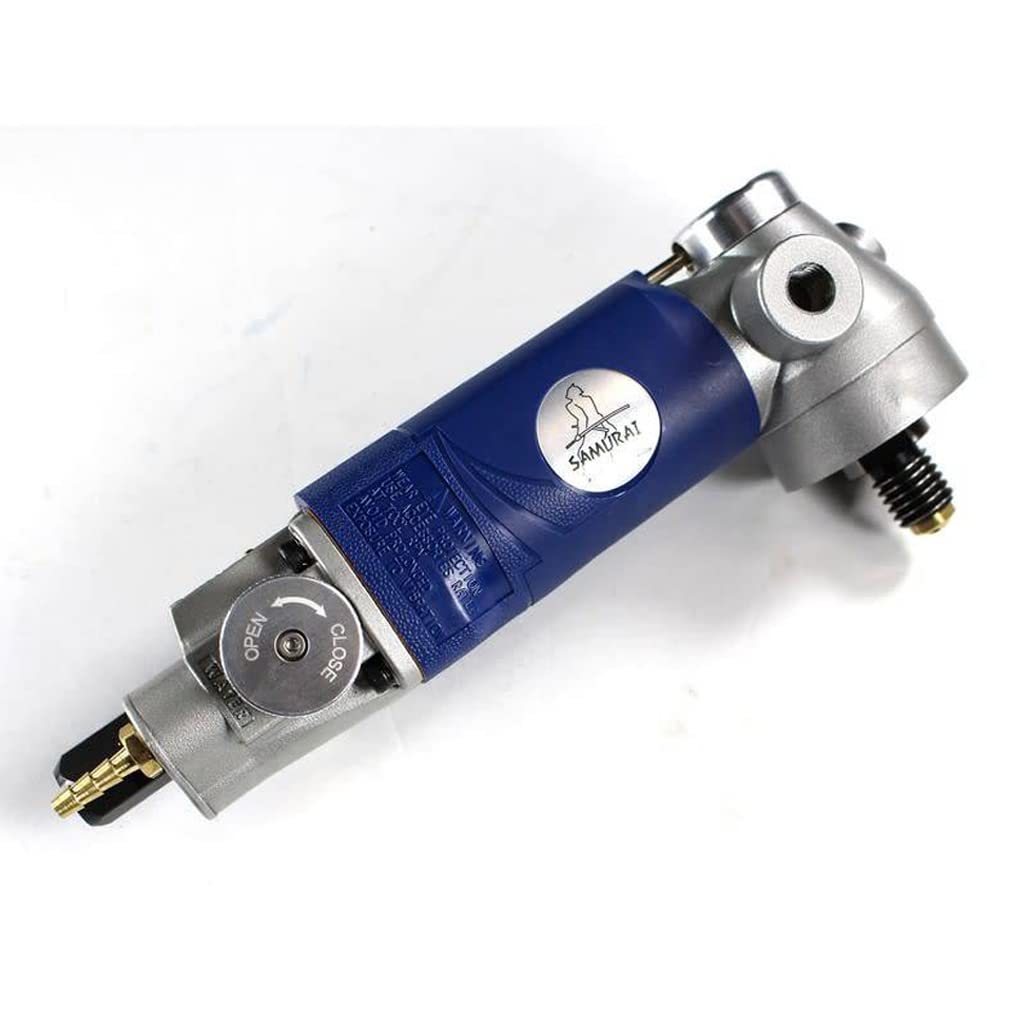 Samurai Wet Stone Polisher This is the Samurai Wet Stone Polisher and it is perfect for commercial and industrial applications. The Samurai Air Polisher is a heavy-duty rear exhaust wet polisher, made in Japan, boasting a powerful motor capable of 4,800 RPM 16CFM/90 PSI. This air polisher from Samurai Tools has a built-in water regulator, an auto-stop safety lever, an oil reservoir, rear exhaust and comes with a 90-day warranty. It is excellent for polishing stone and can be used with diamond polishing pads up to 5″ and with diamond cup wheels up to 4″ in diameter. The oil reservoir allows you to easily maintain the polisher, drastically improving the life of the tool. This rear exhaust, pneumatic wet polishing tool is designed for continuous production applications and improved safety. Lightweight and compact, this tool provides the operator with increased comfort and reduced fatigue. Cast from aircraft aluminum, the Samurai Pneumatic Polisher is one of the most durable tools of its kind on the market for polishing stone. The water-tight sealed bearings provide long life and smooth rotational speeds in all operating conditions. The water and air controls are simple to use and conveniently located. The exhaust is vented at the rear of the tool and carried away from the operators’ hands by the hose protector. This tool comes with a: 25′ Water hose, 5′ Air hose, 3′ Air/water hose protector, Handle & Wrenches