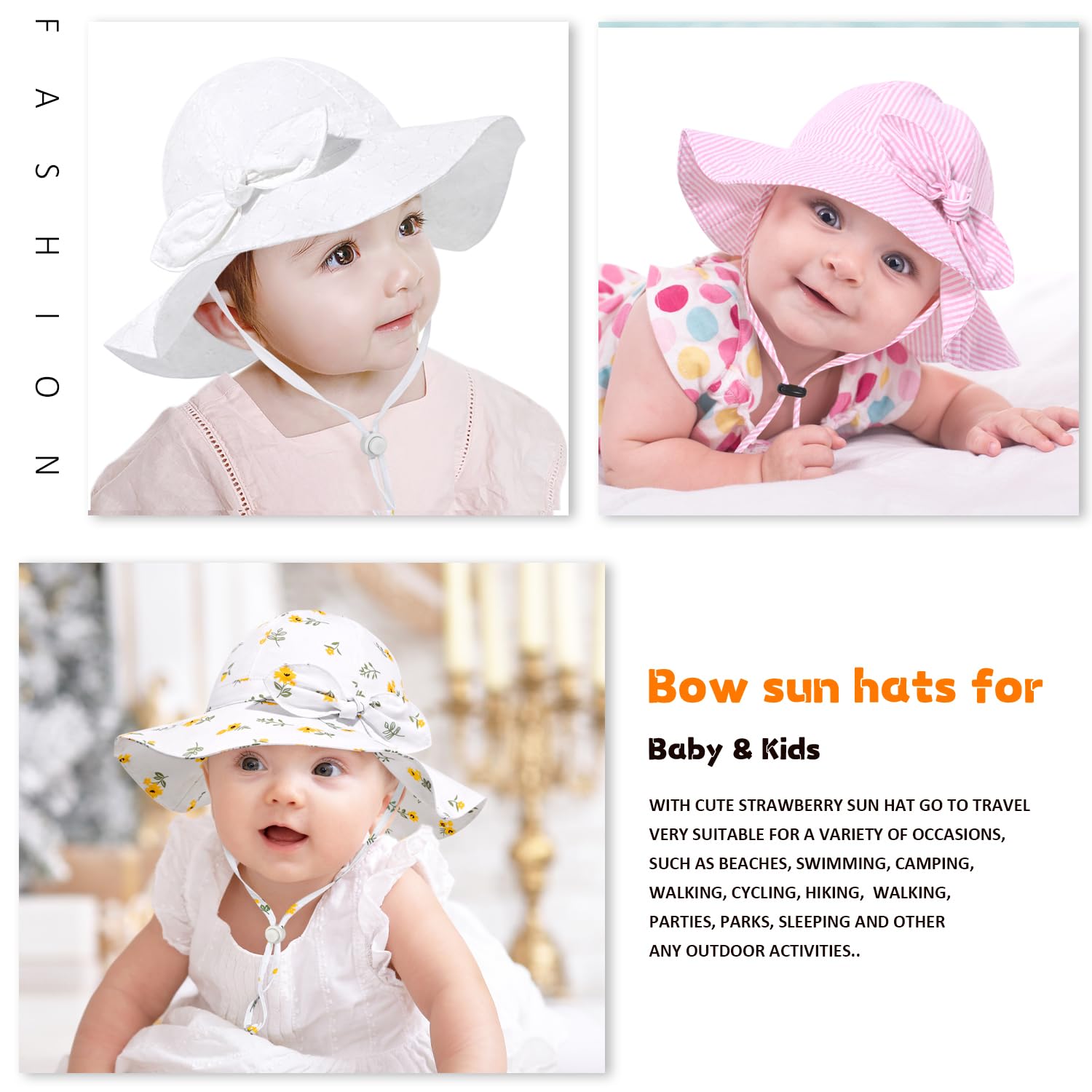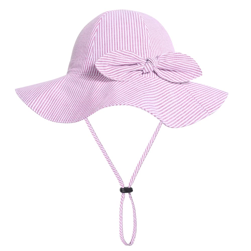 FASHIONABLE: Wide brim baby sun protection hat with bow tie is the perfect accessory for you. Comfortable, extra soft lining & patterned design, perfect for all day wear.Breathable material keeps baby cool.