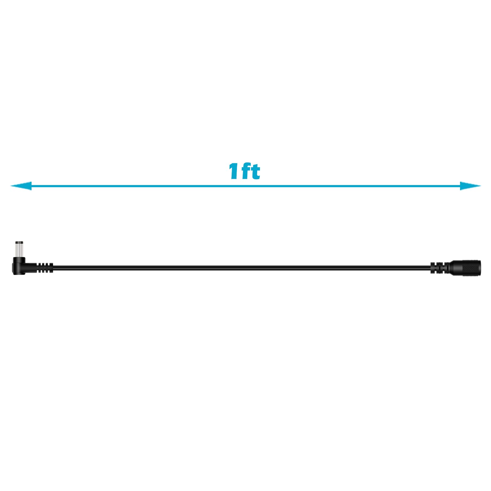 5.5mm x 2.5mm L-Shape DC power supply extension cable, convert straight plug to 90 degree right angle plug, male to female plug jack connector extension cord.